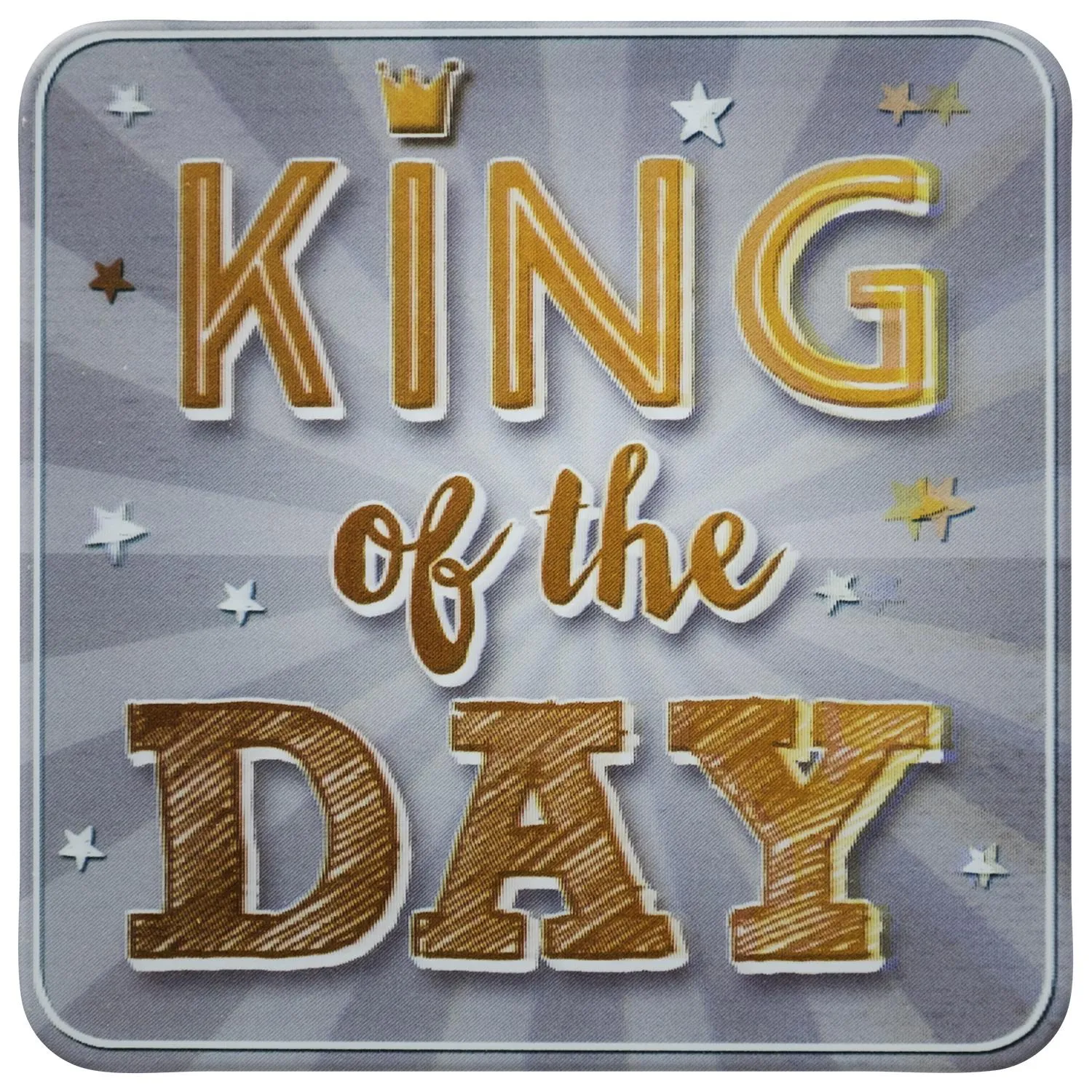 Mit diesem gold-grauen Untersetzer kommt nicht nur Glanz auf den Tisch, sondern er sorgt mit dem liebevollen Kompliment »King of the day« auch für gute Laune. Außerdem ist der Untersetzer perfekt, um den Tisch zu Ehren des Kings, für ein leckeres Essen zu decken.