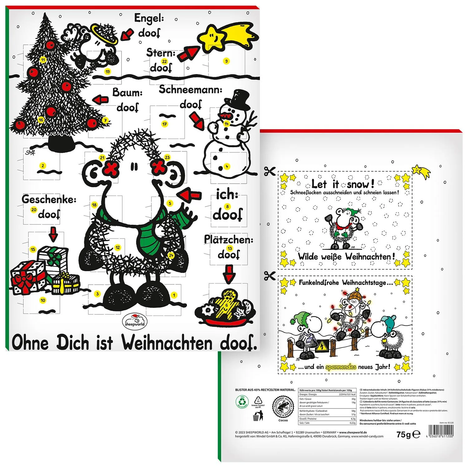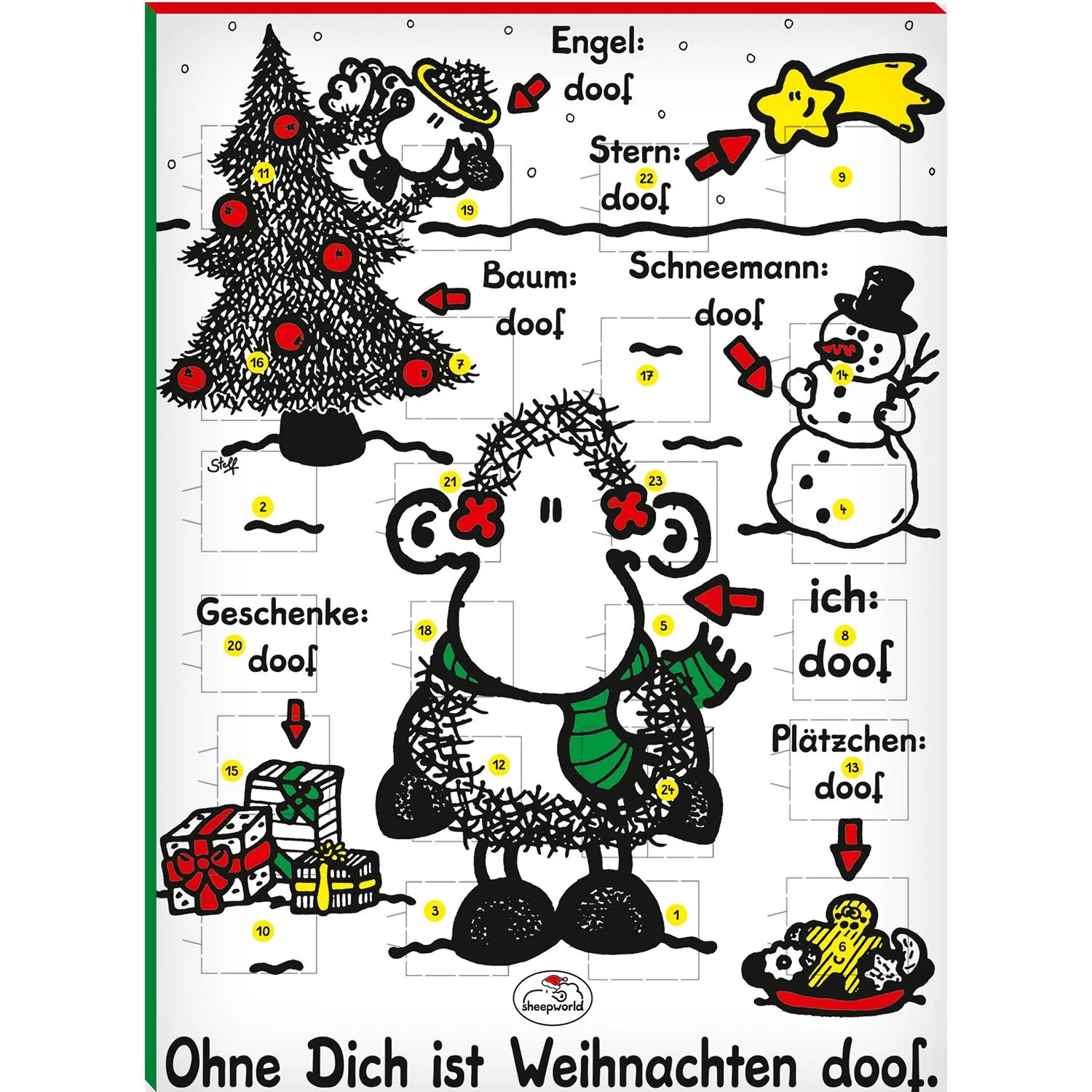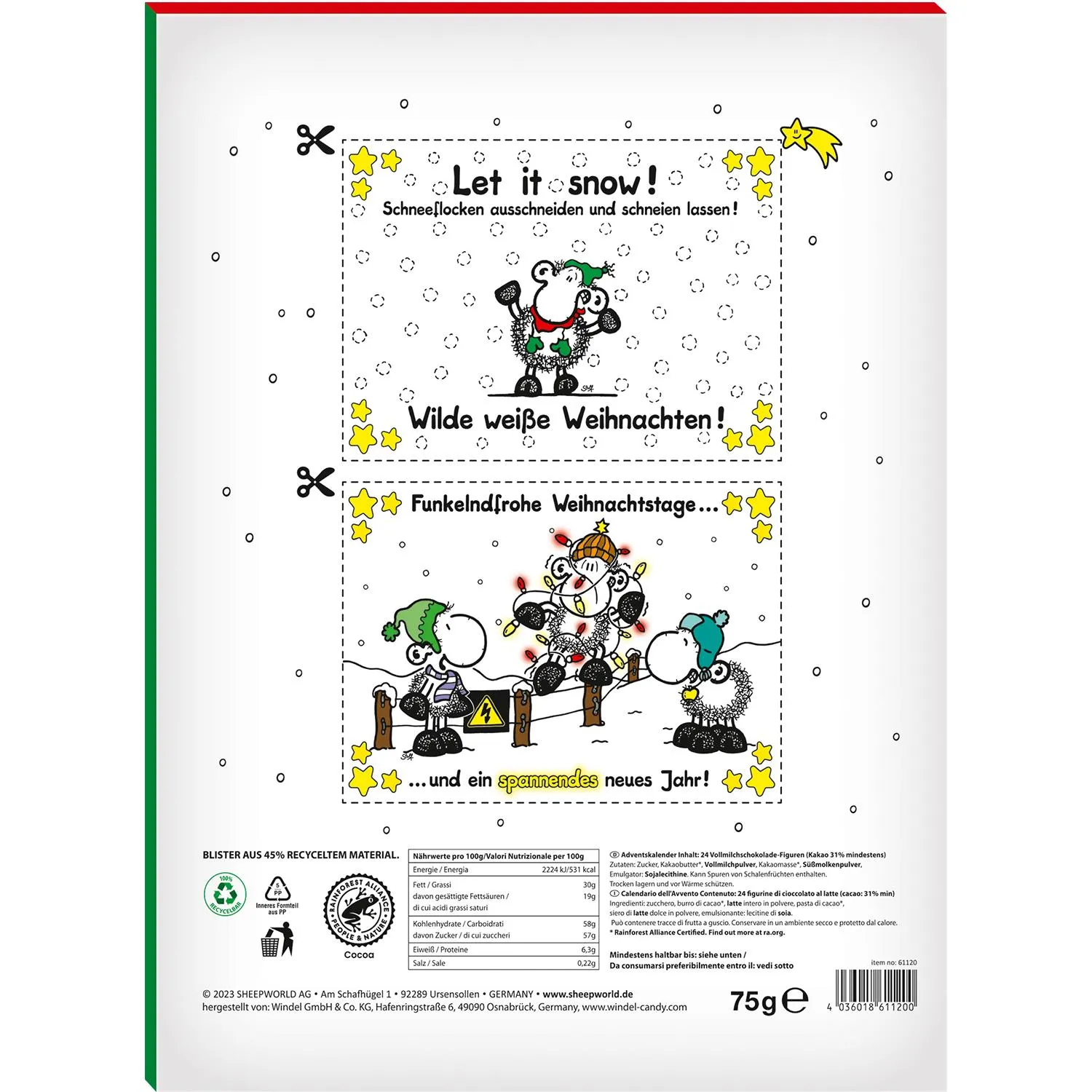 - mit 14 weihnachtlichen Vollmilchschokolade-Figuren und 10 sheepworld Vollmilch-Schäfchen