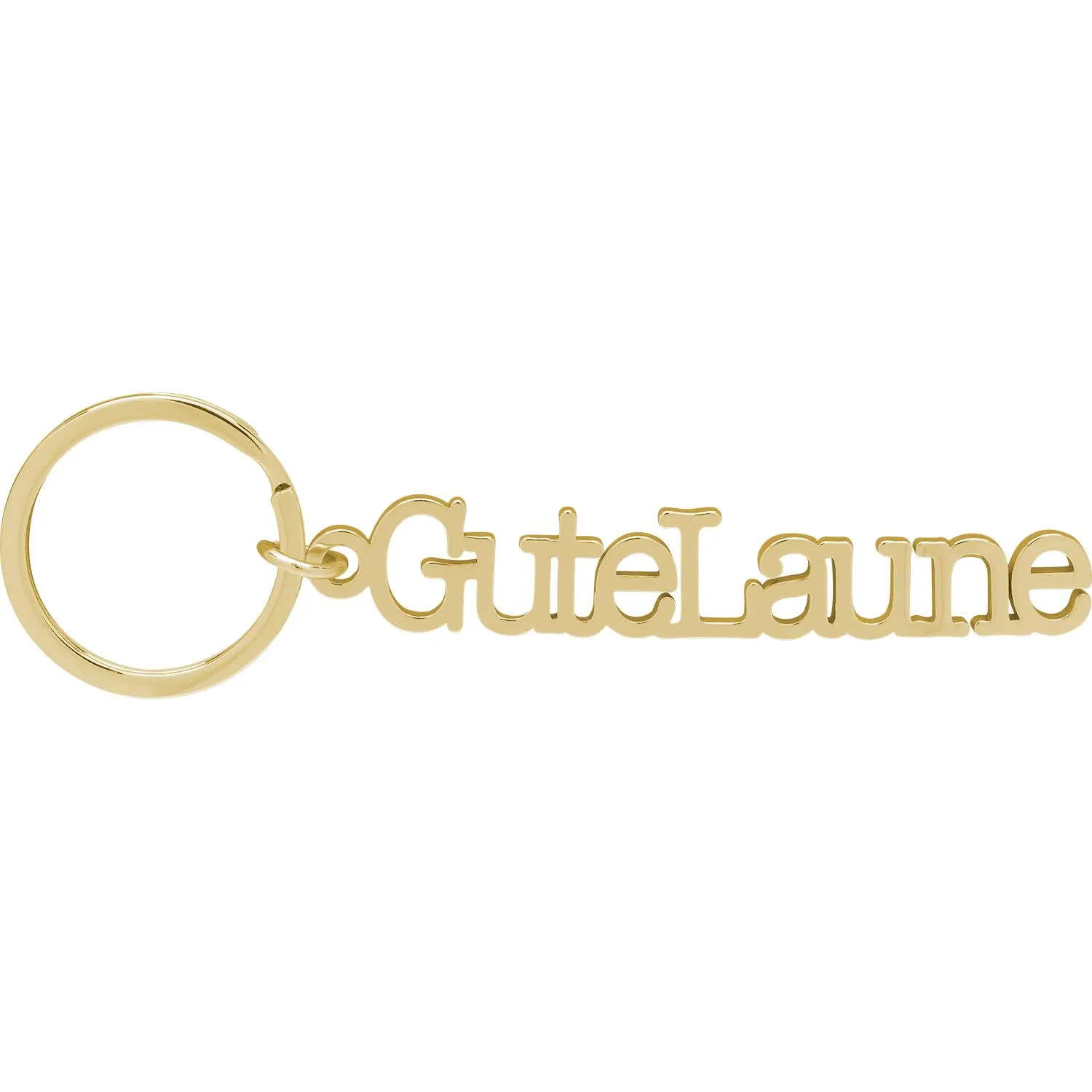 "Der Spruch ""Gute Laune"" auf einem Namensschlüsselanhänger ist eine erfrischende Erinnerung daran, das Leben mit einem Lächeln anzugehen. Gute Laune ist ansteckend und kann die Stimmung von Dir und anderen positiv beeinflussen. Mit einem Namensschlüsselanhänger, der den Spruch ""Gute Laune"" trägt, kannst Du Dich selbst daran erinnern, das Beste aus jedem Tag zu machen und anderen Menschen ein Lächeln ins Gesicht zu zaubern."