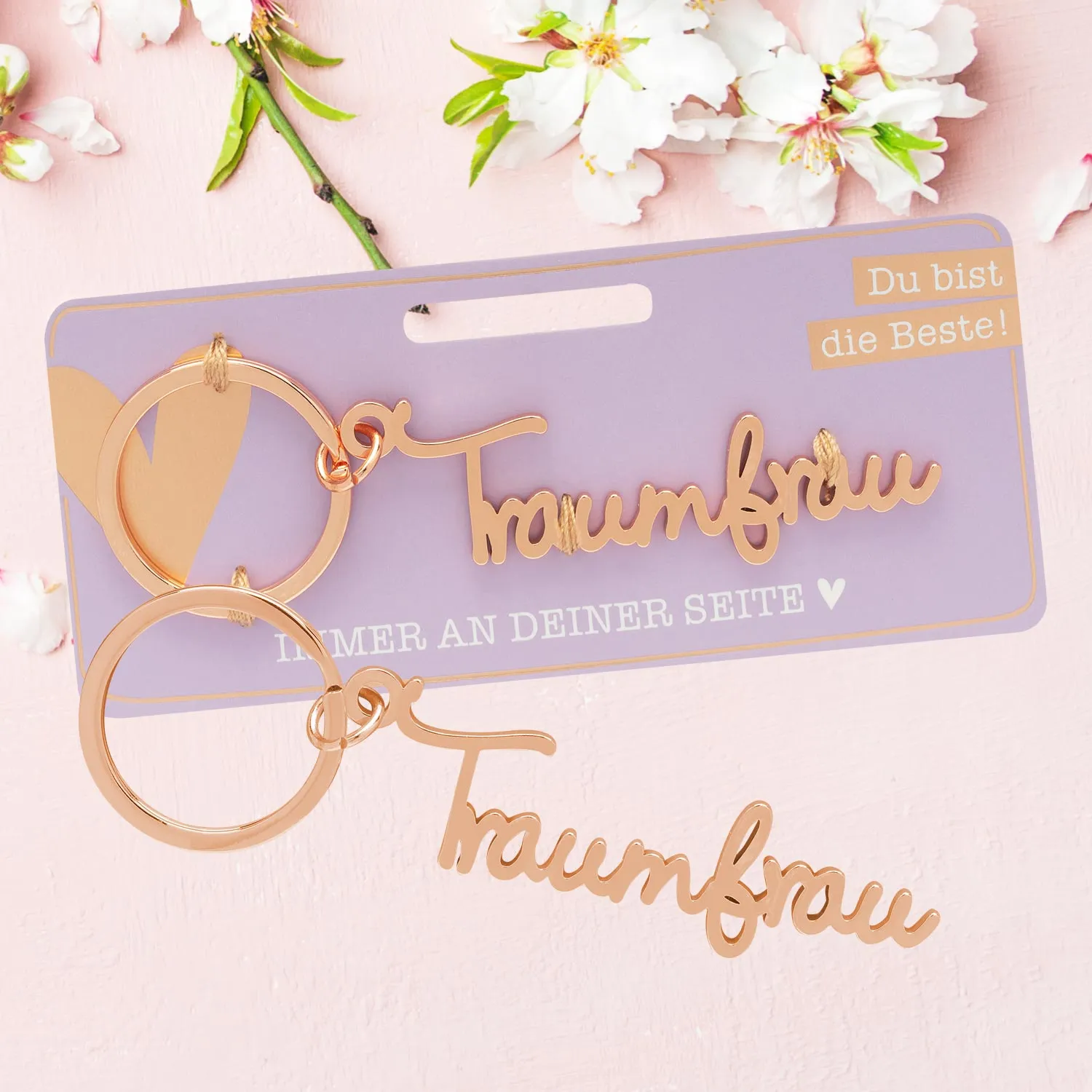 - Metallschriftzug inkl. Schlüsselring auf Headerkarte