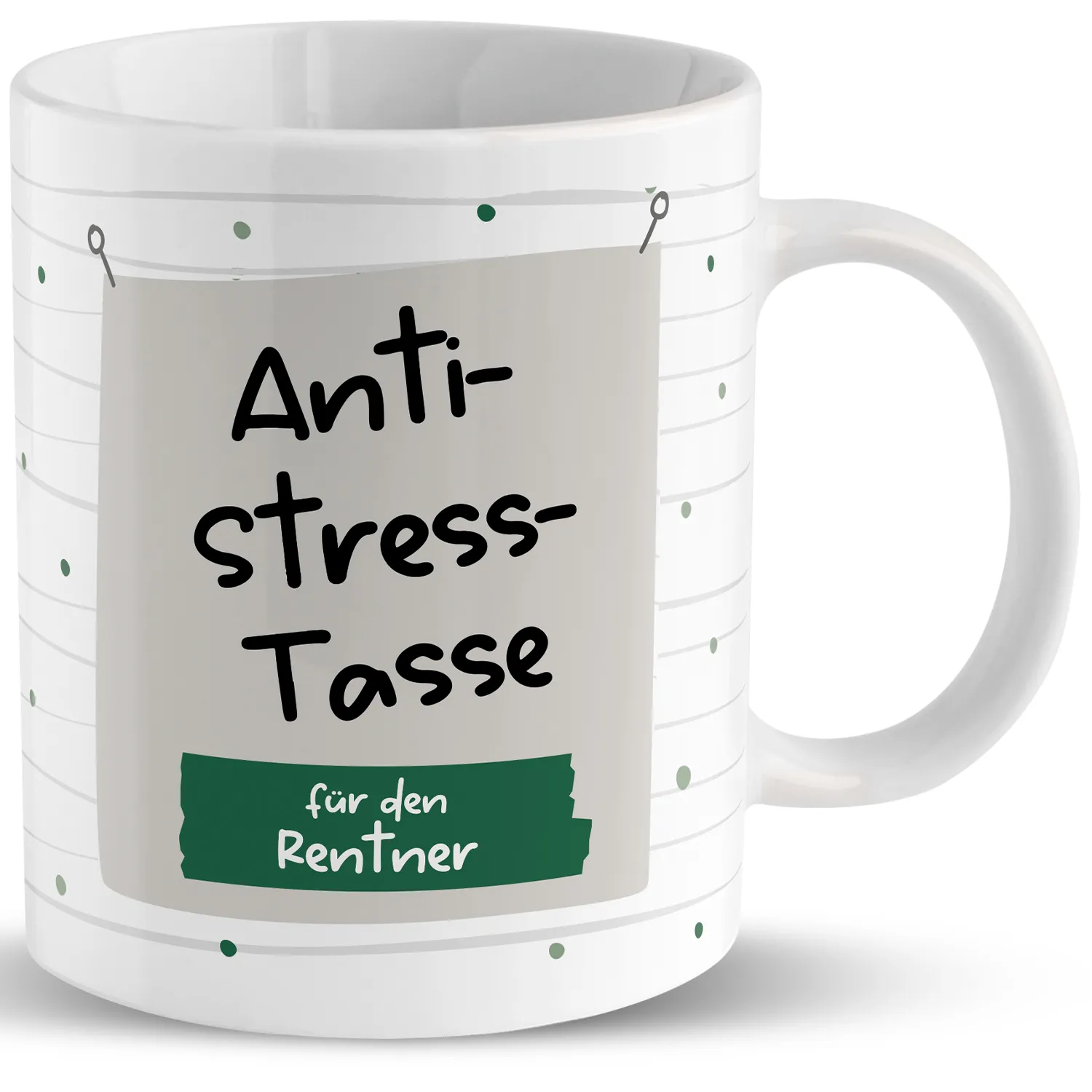 Anti-Stress-Tasse »für den Rentner …« mit Wunschnamen, weiß, personalisiert