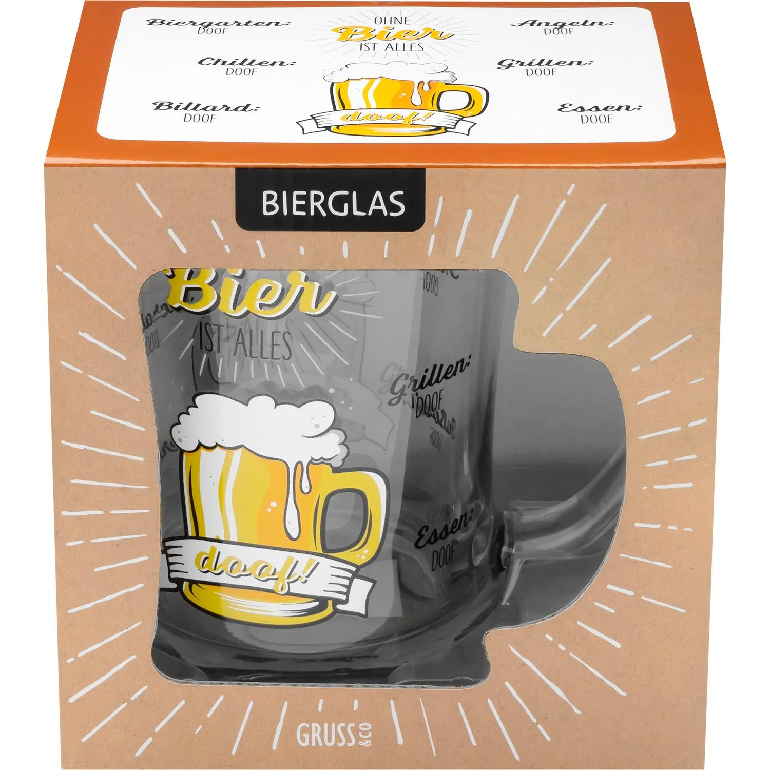 Wenn Du auch der Meinung bist, dass ohne Bier alles doof ist, ist dieses Bierglas ein absoluter Muss für Dich! Mit dem witzigen Motiv und der tollen Geschenkbox ist es schon fix und fertig, um an den größten Bierfan verschenkt zu werden.