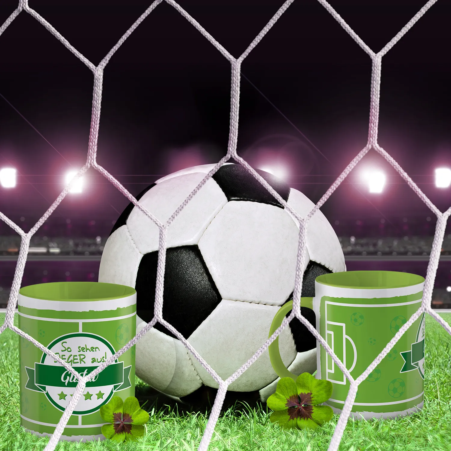 So sehen Sieger aus!!! Beim Anfeuern Deiner Lieblingsmannschaft kann die Stimme schon mal versagen und das Mitfiebern sorgt ab und an für ein paar Schweißperlen auf der Stirn. Doch mit einem großen Schluck aus der knallgrünen Tasse mit eigenen Namen bringst Du Deine Stimme schnell wieder auf Vordermann und Du kannst entspannt das Spiel weiterverfolgen.
