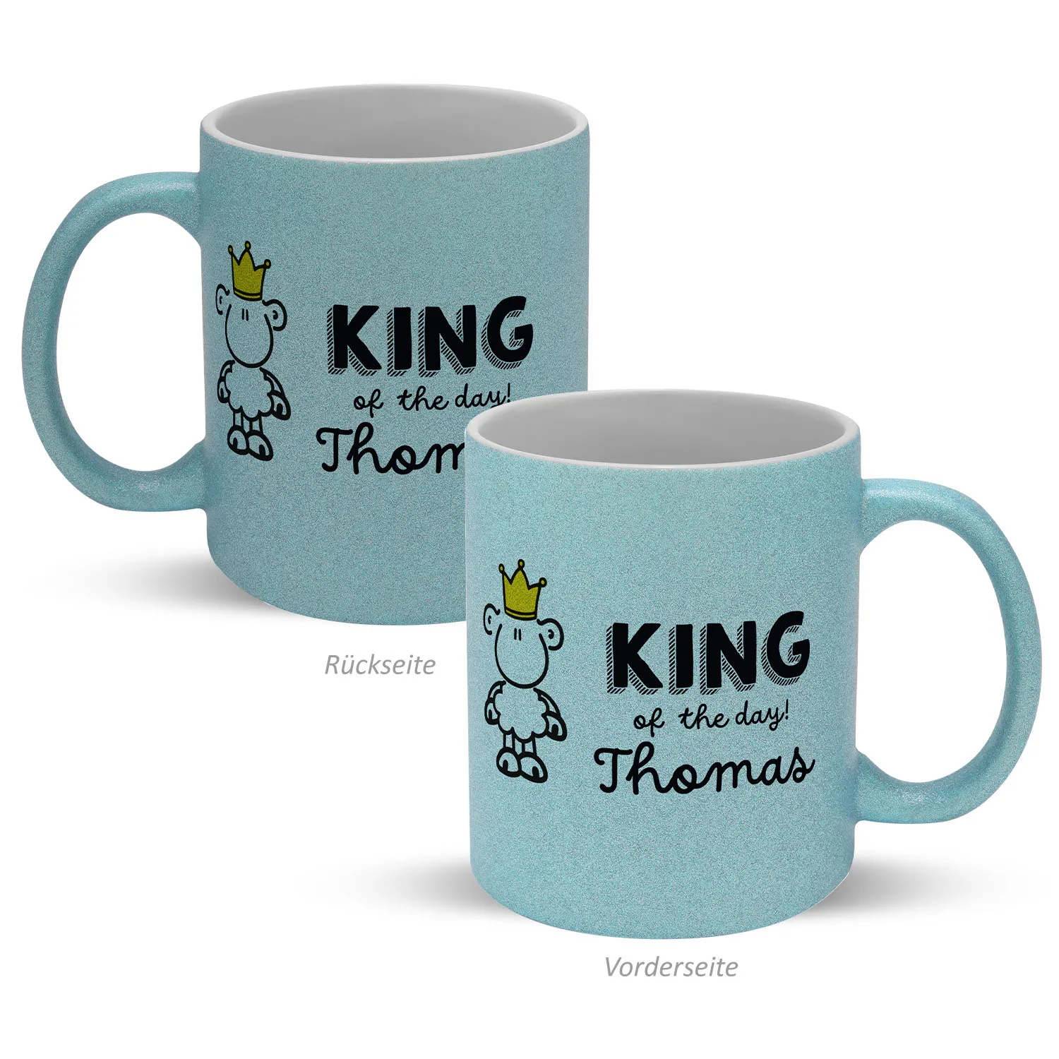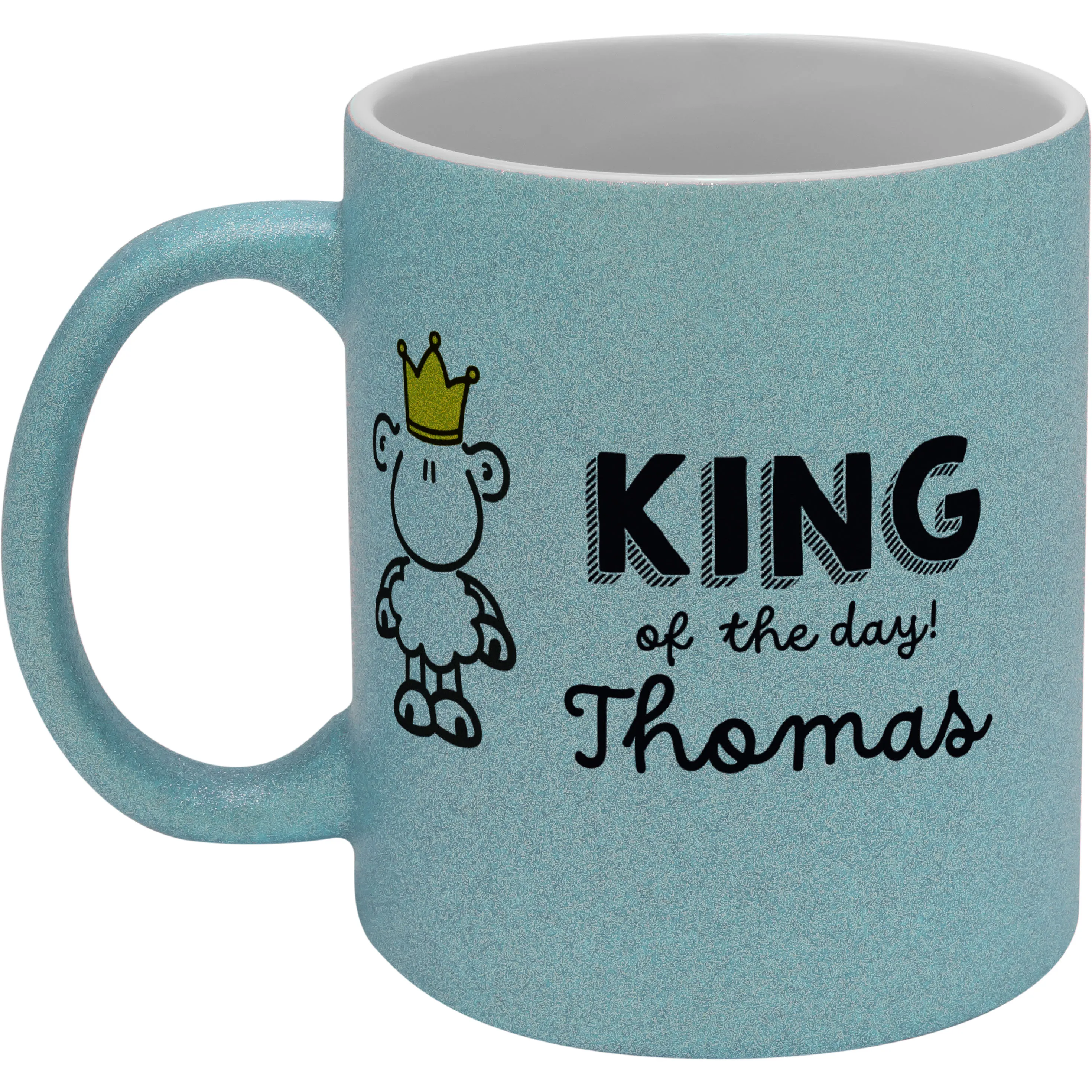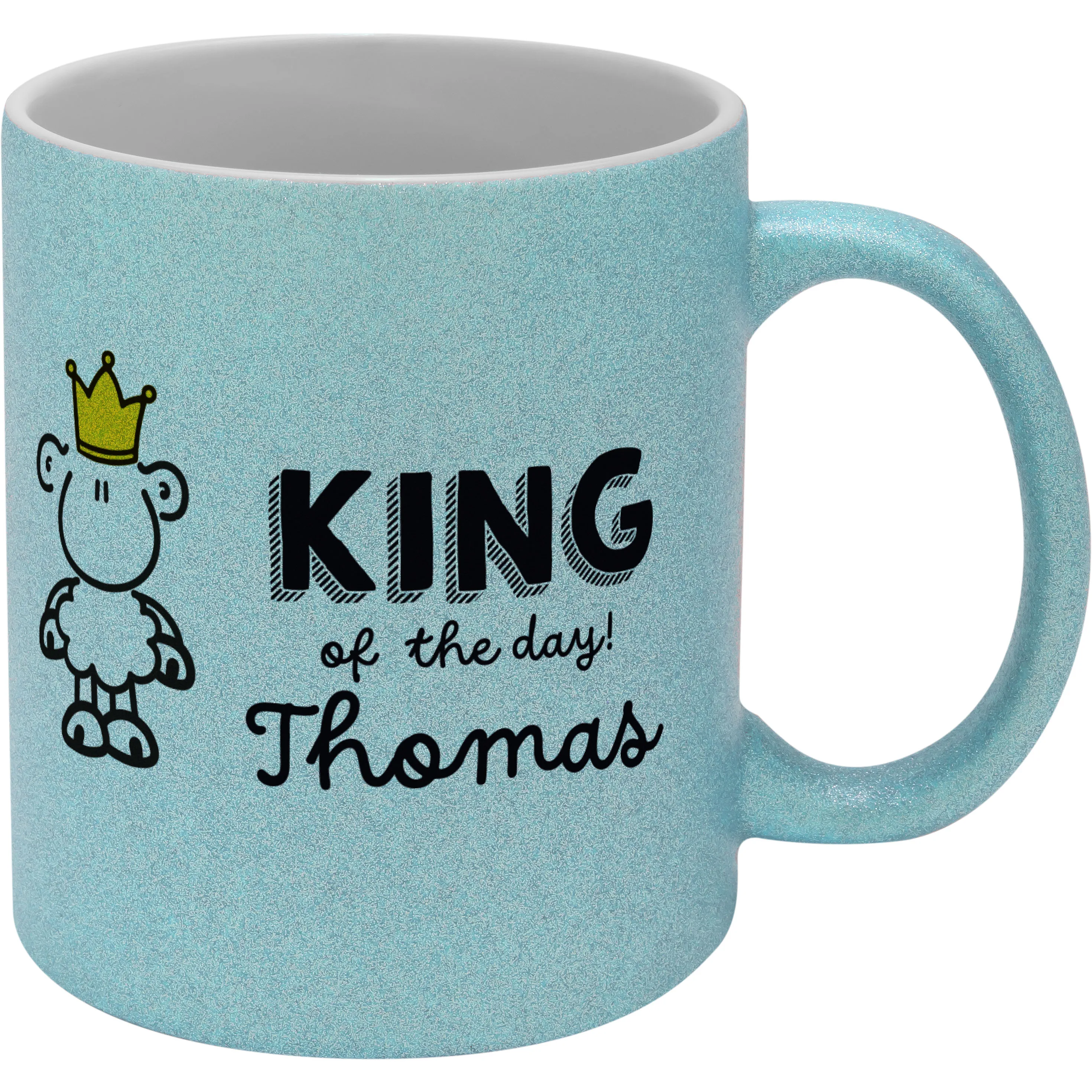 Dein King of the day soll glitzern und strahlen! Mit dem Namen Deines Helden versehen ist diese Glitzertasse ein einzigartiges Geschenk, das dem Beschenkten ein Lächeln ins Gesicht zaubern wird.