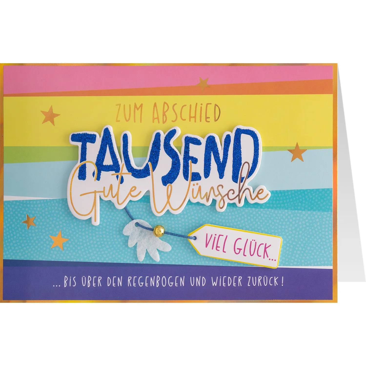 Abschiede sind selten leicht. Mit dieser handgemachten Grußkarte verschenkst Du stilvolle Abschiedsgrüße an einen besonderen Menschen. Das süße Accessoire und die Glitzerveredelungen sind echte Highlights und hellen die Stimmung beim Abschied garantiert auf. In Kombination mit ein paar persönlichen Worten im Inneren der Karte wird aus ihr ein echter Herzensbotschafter!