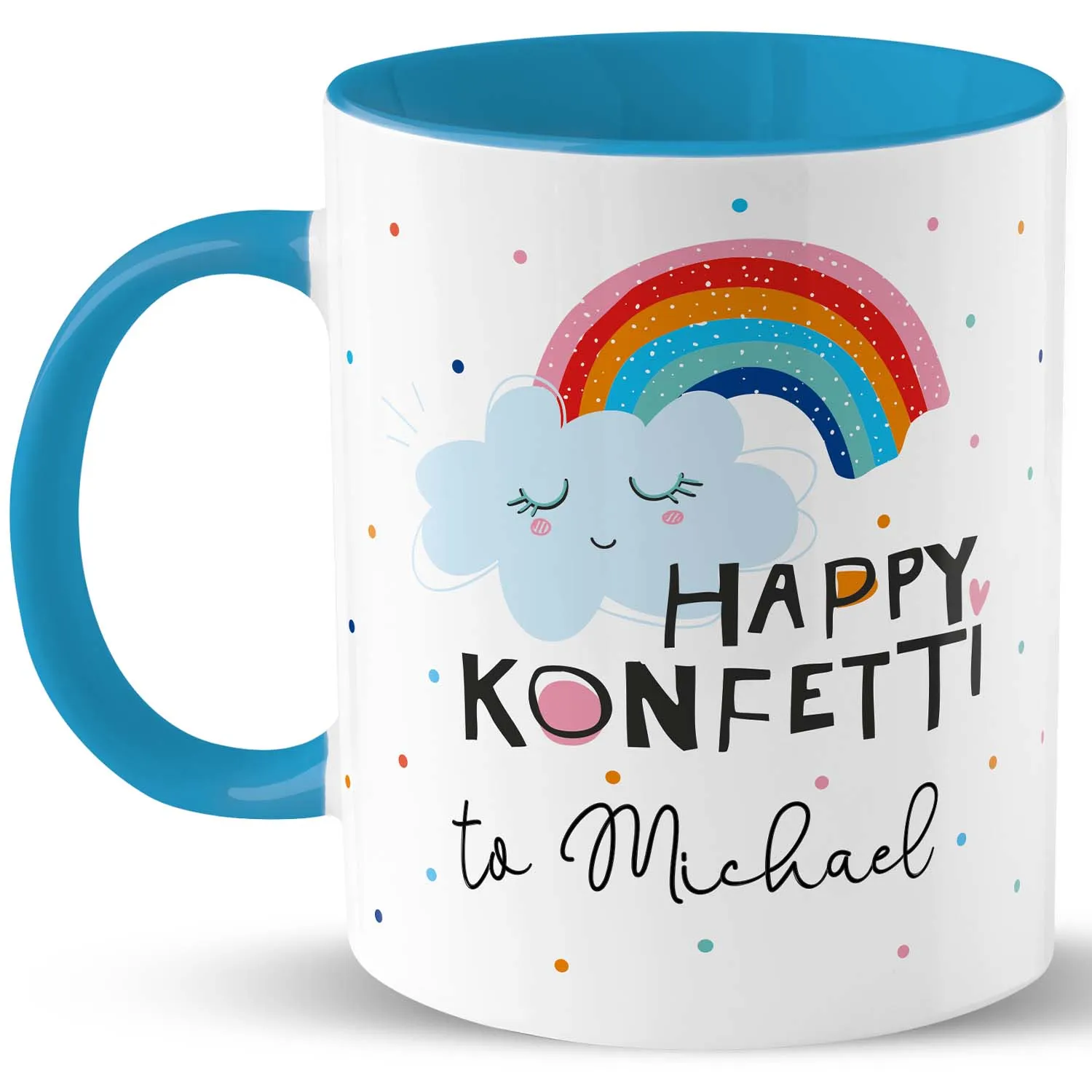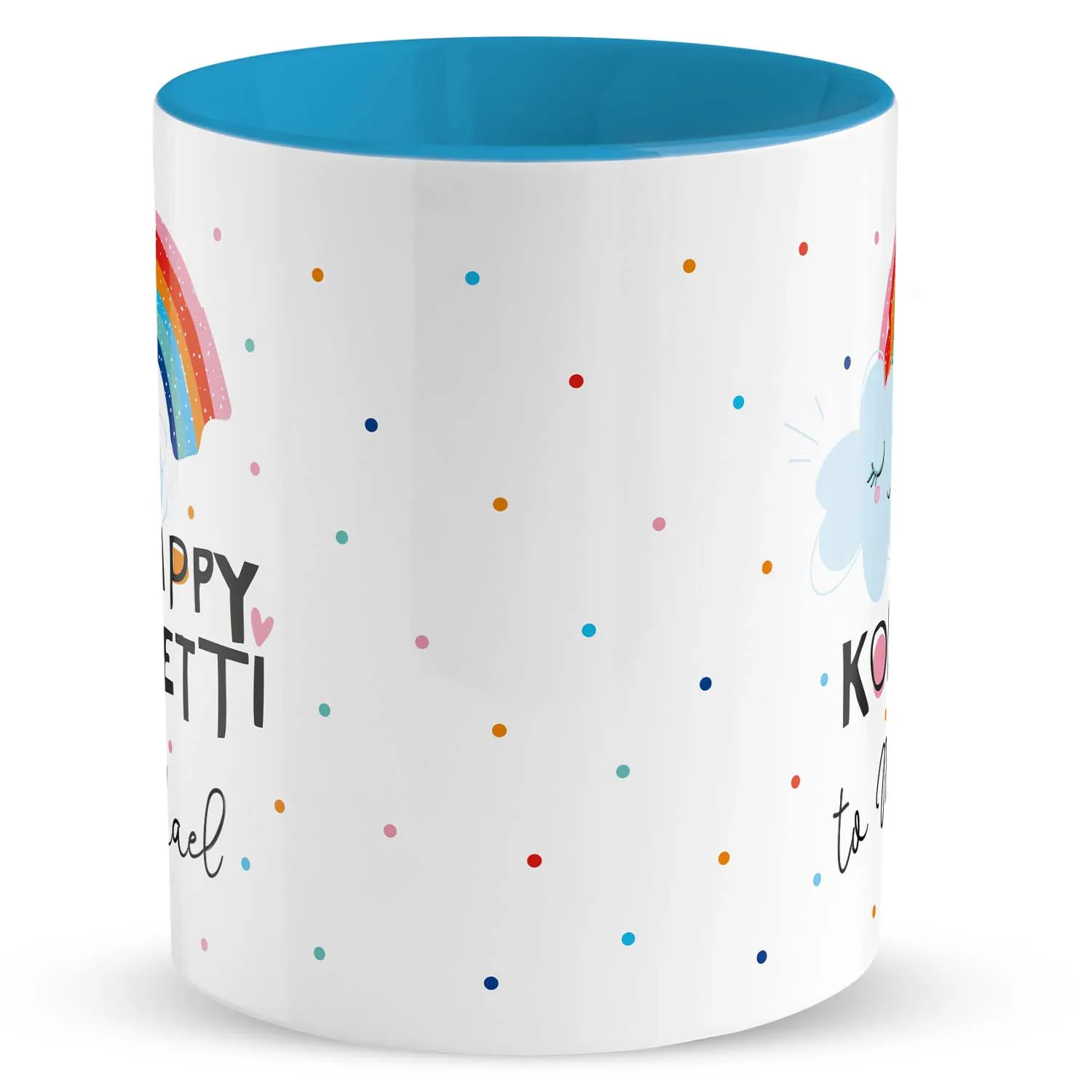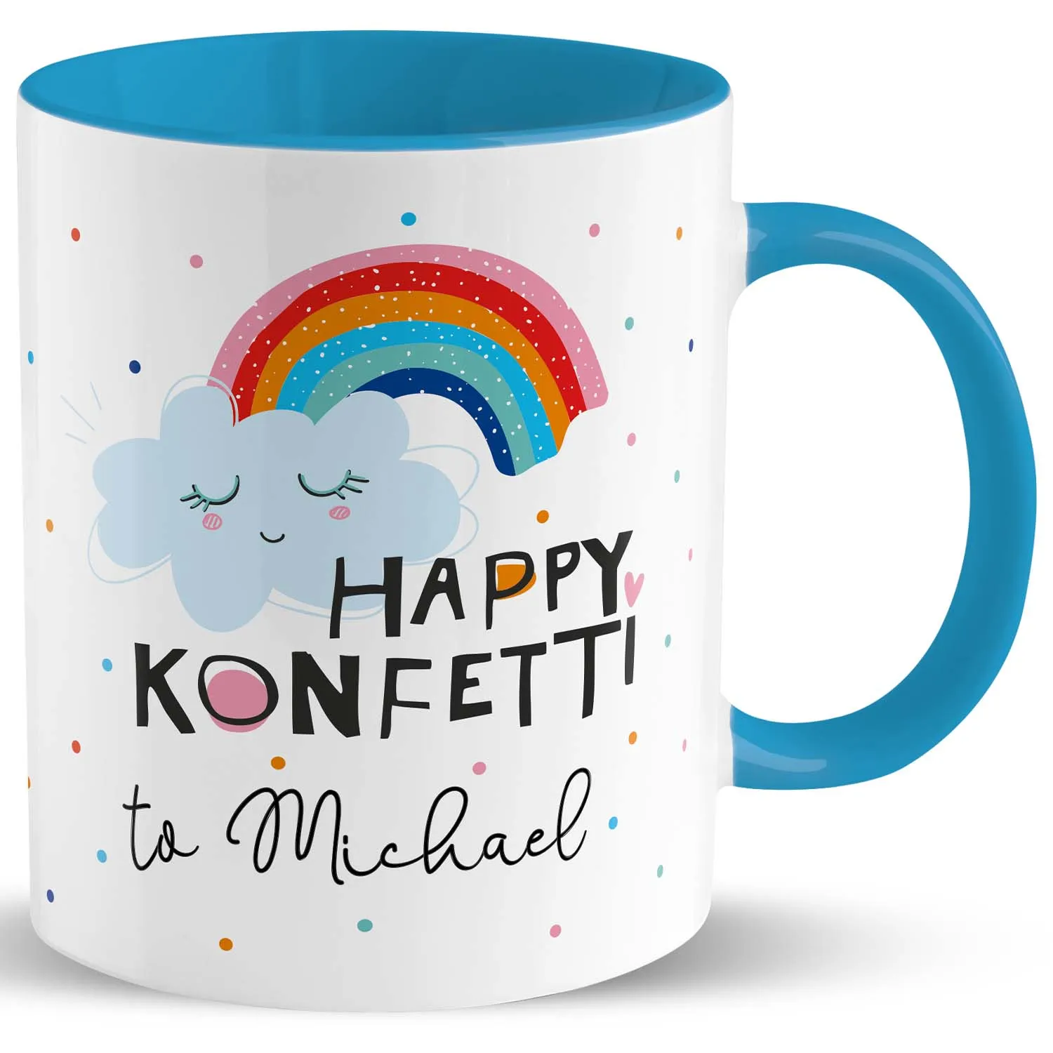 H:)PPYlife L1863 Tasse Motiv »Happy Konfetti to …!« mit Wunschnamen, blau, personalisiert