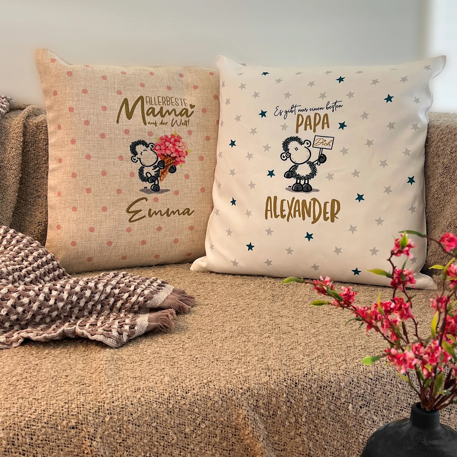 Es gibt nur einen besten Papa - Deinen! Mit dem Namen Deines Papas beschriftet ist dieses Kissen das optimale Geschenk zum Vatertag oder zum Geburtstag. Das stylishe Sternenmuster und das typische sheepworld-Schäfchen machen das Kissen zu etwas ganz Besonderem.