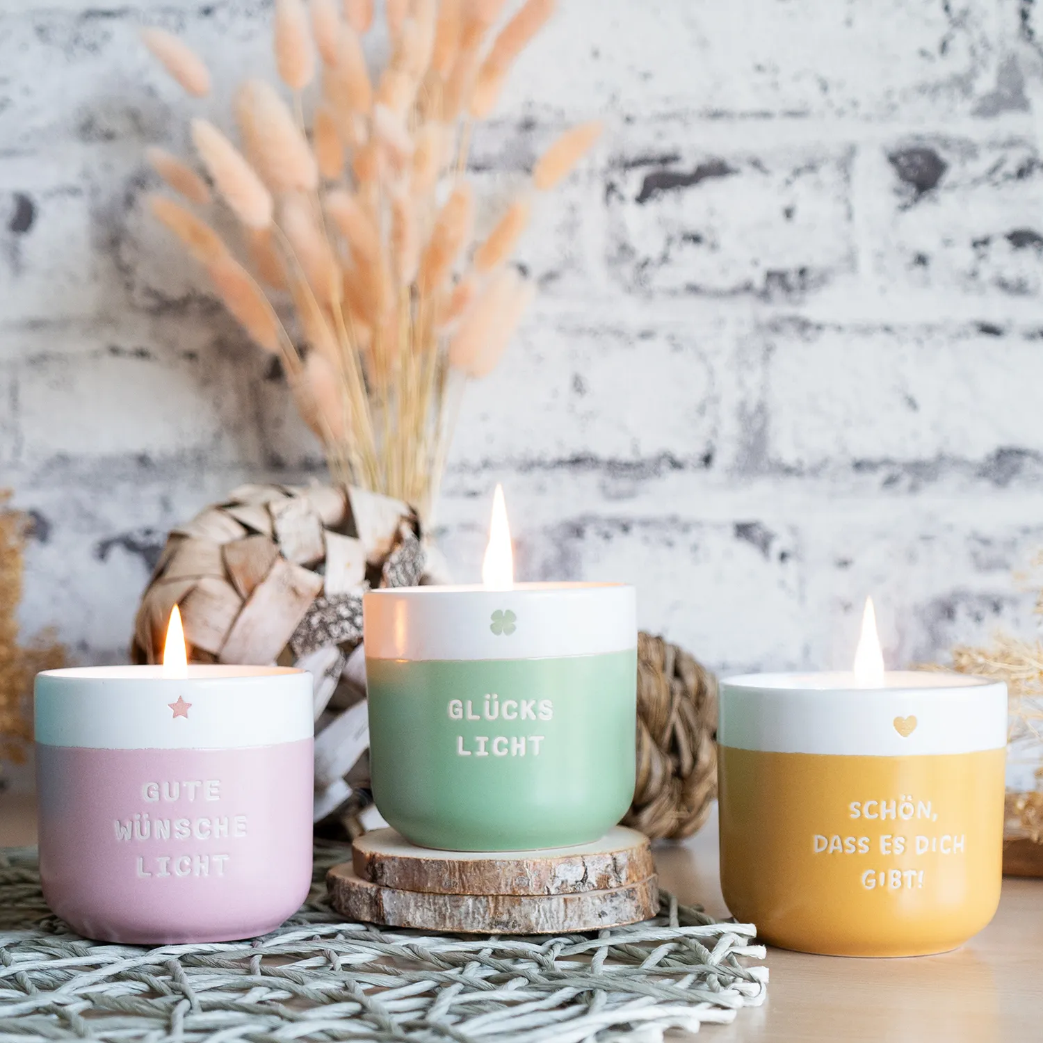 - Material: Steinzeug, Sojawachs, Holzdocht, Papier