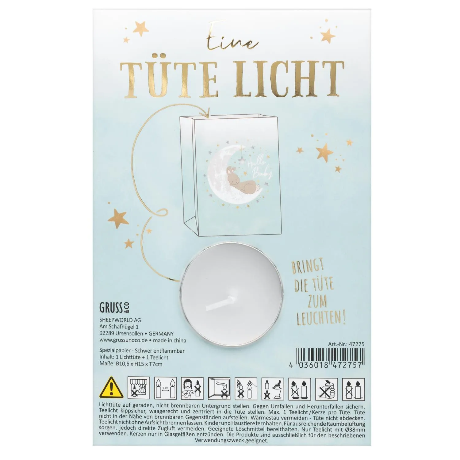 GRUSS & CO 47275 - in 42 verschiedenen Designs erhältlich - 10,5 x 15 cm - inkl. Teelicht