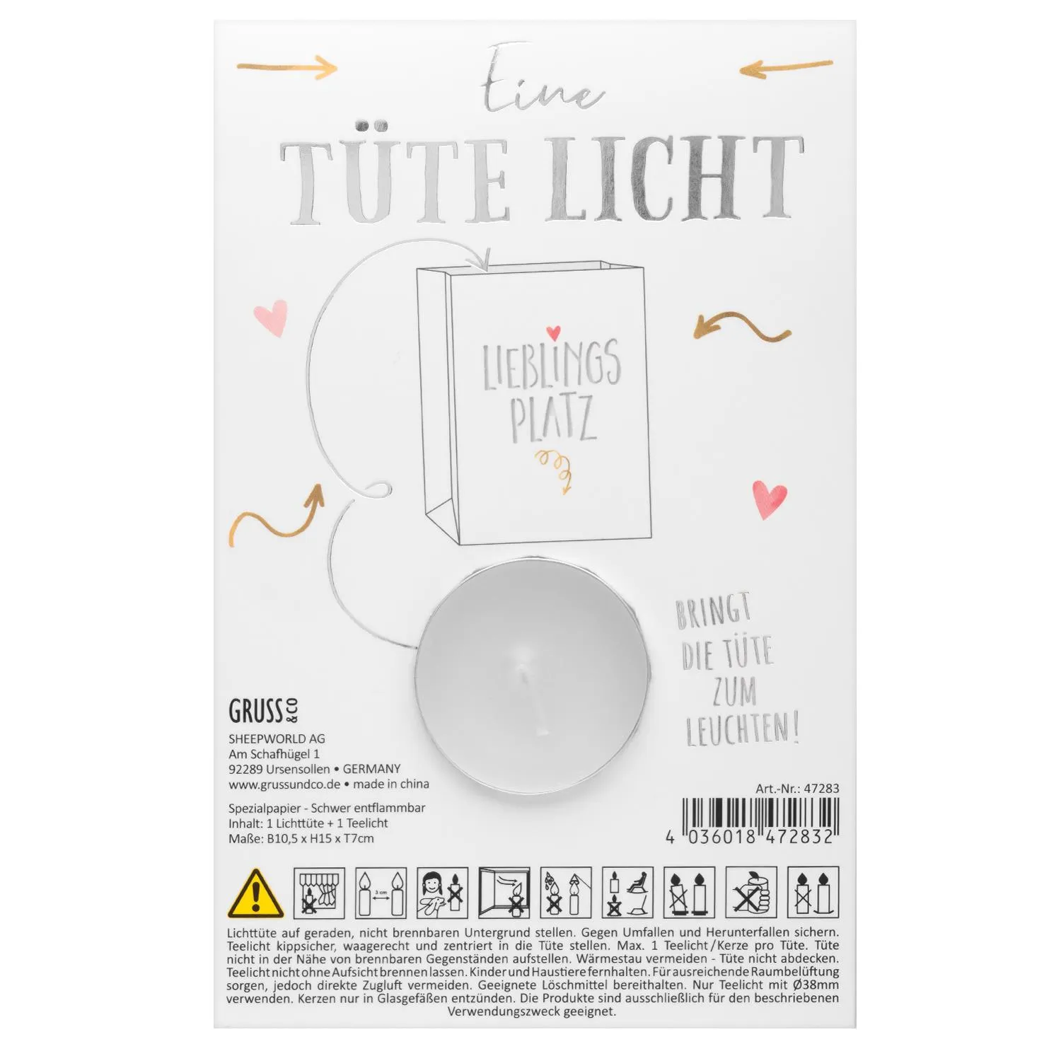 GRUSS & CO 47283 - in 42 verschiedenen Designs erhältlich - 10,5 x 15 cm - inkl. Teelicht