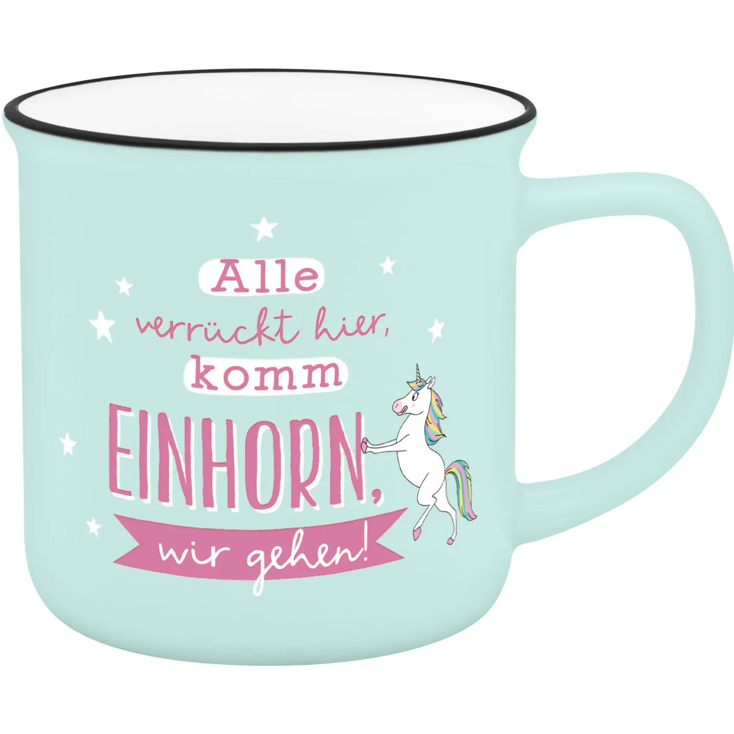 „Alle verrückt hier, komm Einhorn, wir gehen!“ – wer hat sich das nicht schon mal gedacht? Diese Tasse spricht allen aus der Seele, die genug vom Alltagswahnsinn haben. Sie bringt eine große Portion Spaß in die Kaffeepause und erinnert daran, dass es völlig okay ist, sich einfach mal rauszuziehen. Und auch wenn das Einhorn gerade nicht verfügbar ist, sorgt diese Tasse wenigstens für ein bisschen Zauber im Alltag.