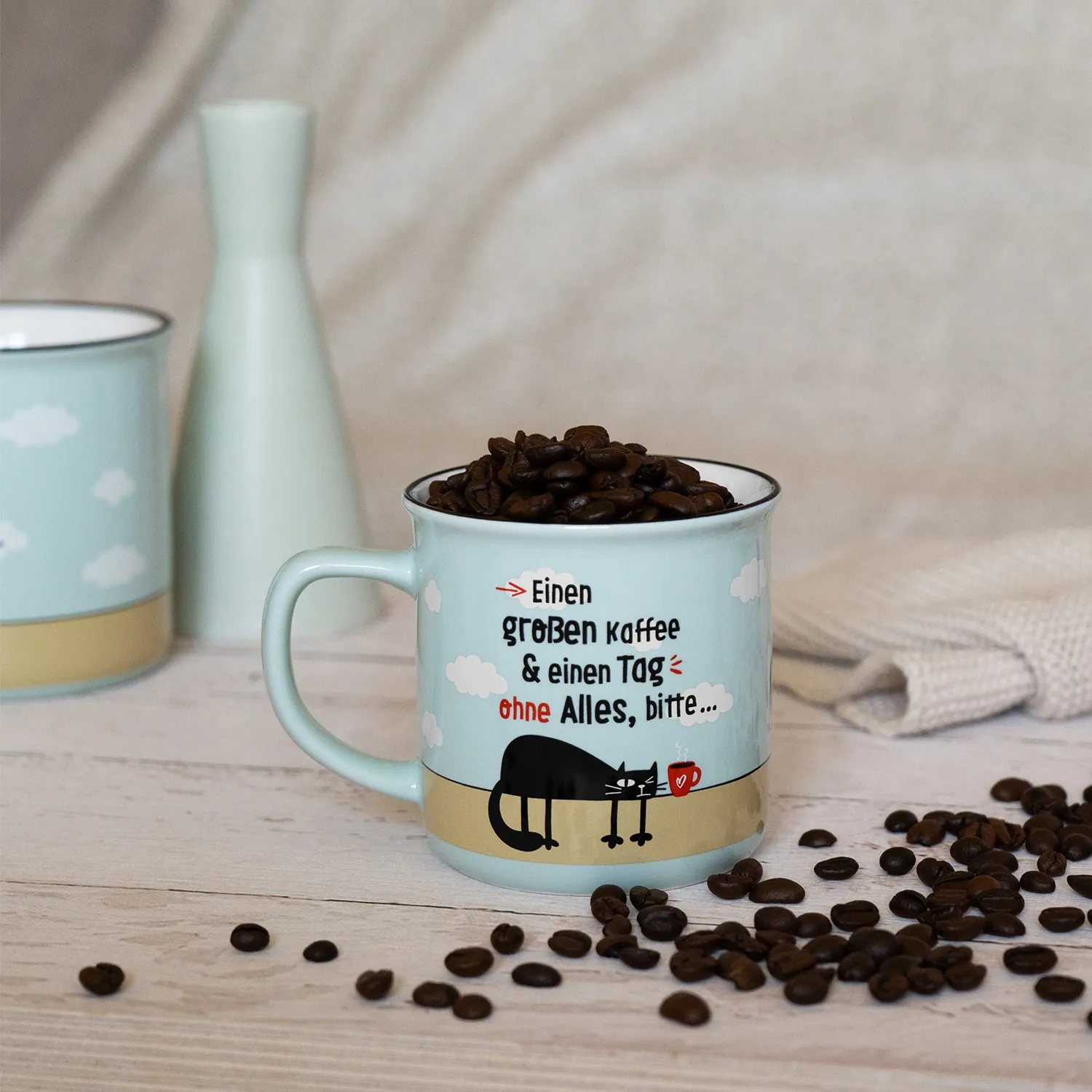 Es gibt Tage, da reicht ein kleiner Kaffee einfach nicht aus – da muss es ein ganzer Ozean sein. Diese Tasse bringt es perfekt auf den Punkt und spricht allen aus der Seele, die manchmal einfach ihre Ruhe wollen. Sie sorgt schon beim ersten Blick für ein Schmunzeln und macht sogar den Montag ein kleines bisschen erträglicher. Und während der Kaffee langsam abkühlt, bleibt zumindest die Botschaft bestehen: Heute bitte einfach mal ohne Alles.