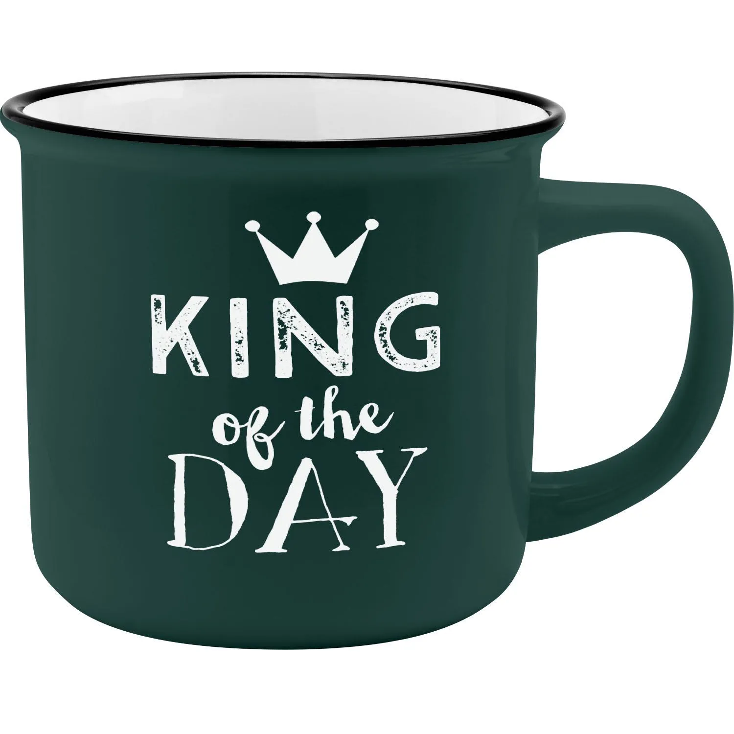 »King of the Day« - was für eine coole Auszeichnung! Dieser trendige Becher in Emaille-Optik ist für echte Könige gemacht. Egal ob zum Geburtstag oder als kleine Aufmerksamkeit für zwischendurch, dieser Becher kommt immer gut an und setzt ein Statement auf jedem gedeckten Tisch.