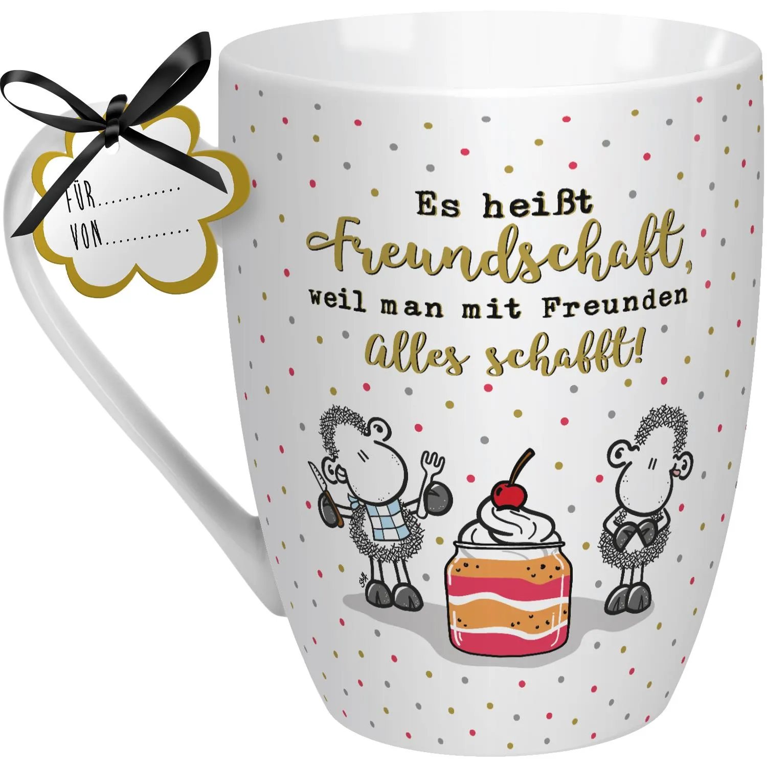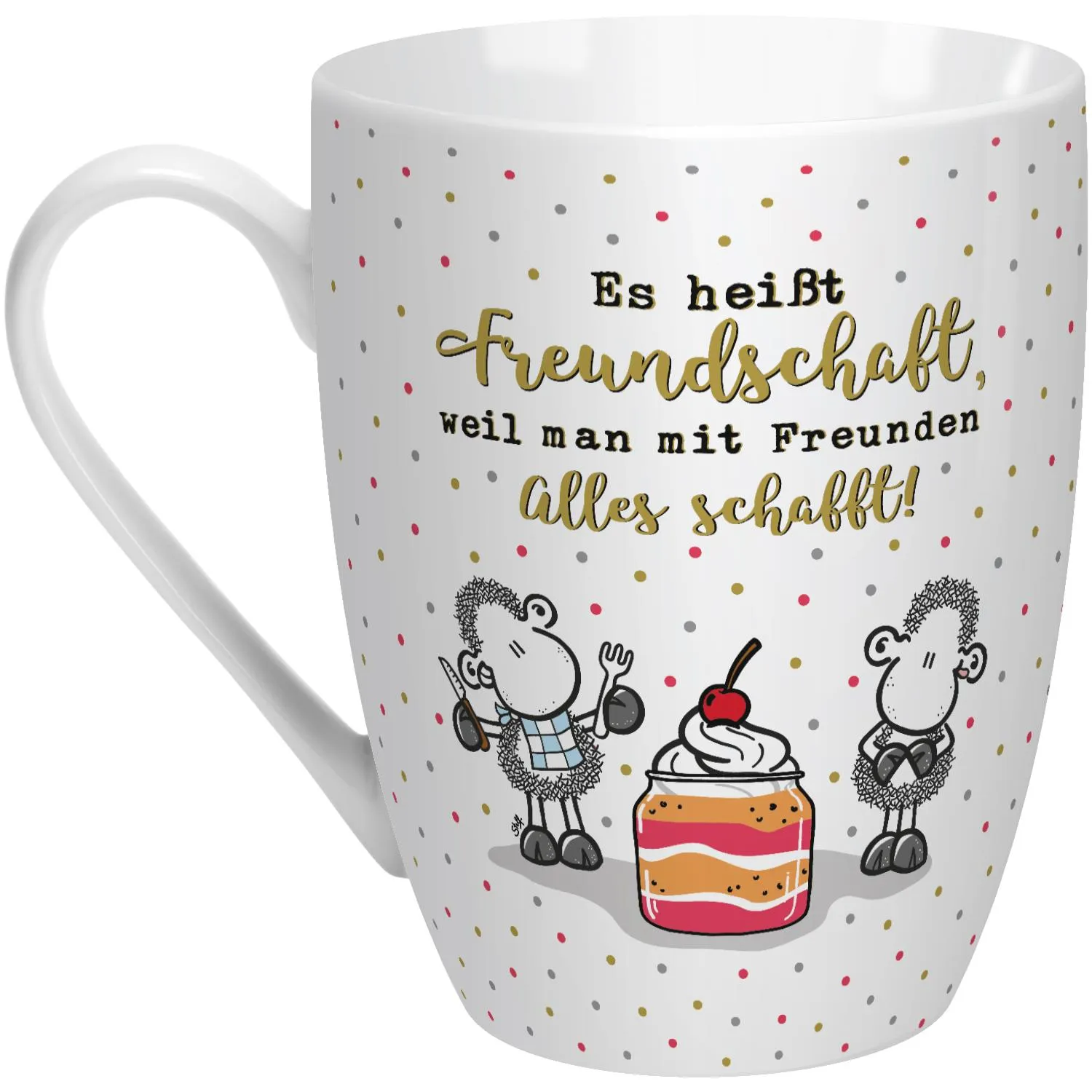 Trendiges Dot-Design und edler Golddruck sind das Highlight der Lieblingstasse für beste Freunde! Die Botschaft »Es heißt Freundschaft, weil man mit Freunden alles schafft« ist ein liebevoller Liebesbeweis an deine BFF.