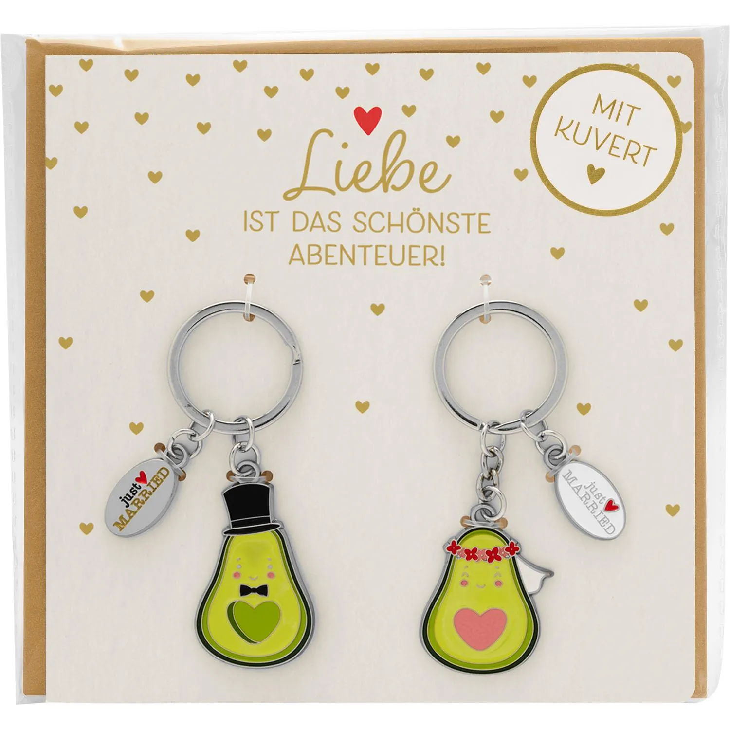 GRUSS & CO 71072 - Paar-Schlüsselanhänger - in Avocadofrom mit je einem Text-Anhänger