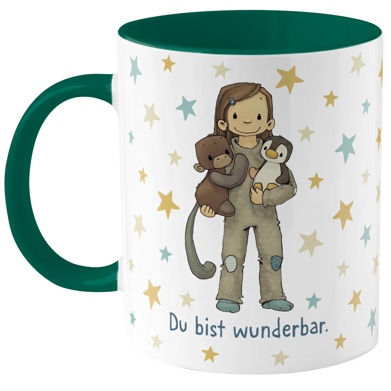 Mit dieser supersüßen Tasse zauberst du garantiert ein Lächeln ins Gesicht! Das niedliche Sheepworld-Motiv zeigt Anouk und den fröhlichen Affi – ein Dreamteam, das jeden Schluck aus der Tasse zu etwas Besonderem macht. Der liebevolle Spruch „Du bist wunderbar“ macht die Tasse zu einem echten Lieblingsstück, und mit dem Wunschnamen wird sie sogar einzigartig! Perfekt für Kinder, die ihr eigenes, personalisiertes Becherchen lieben werden. Ob für Kakao, Tee oder Saft – diese Tasse macht jeden Tag ein bisschen bunter und fröhlicher!