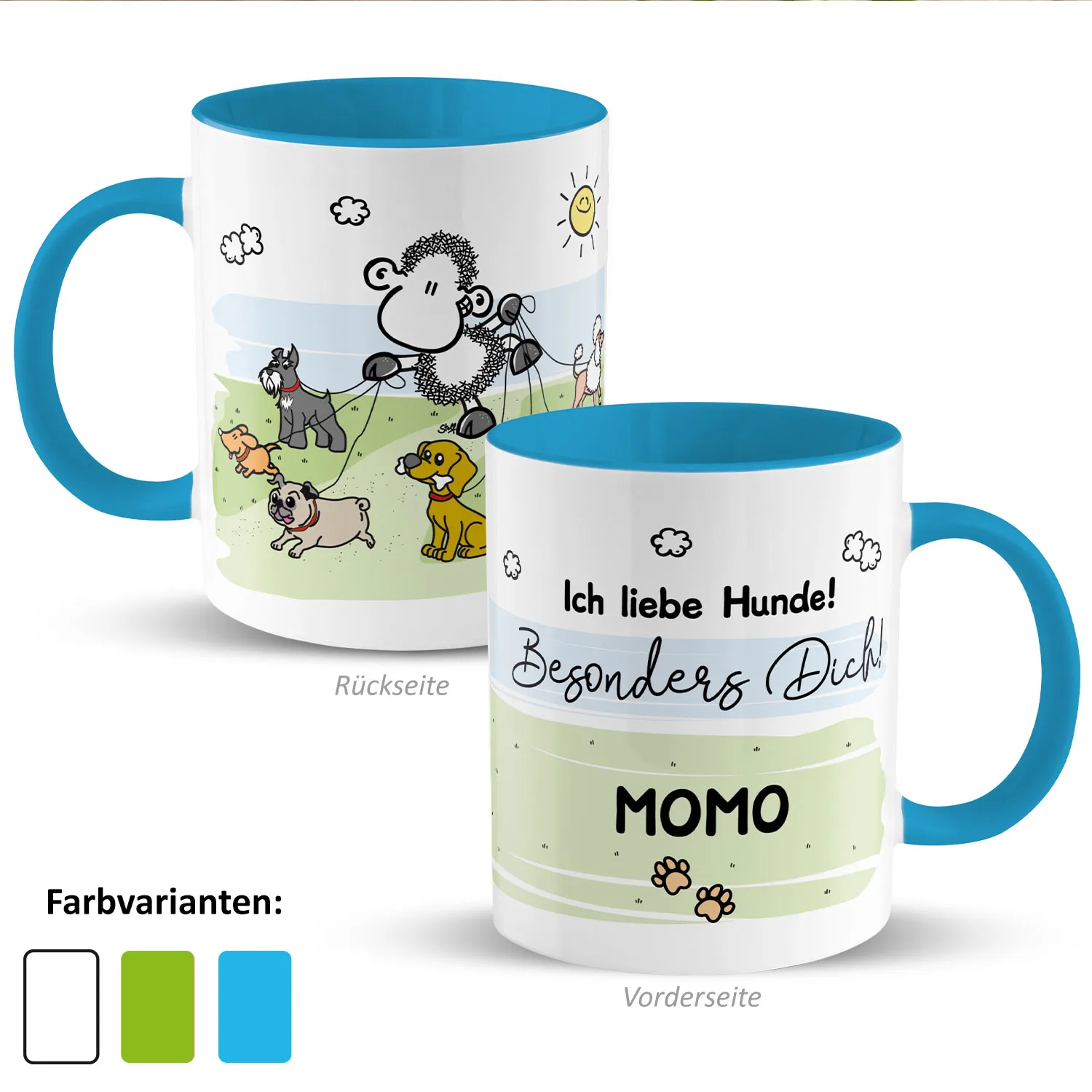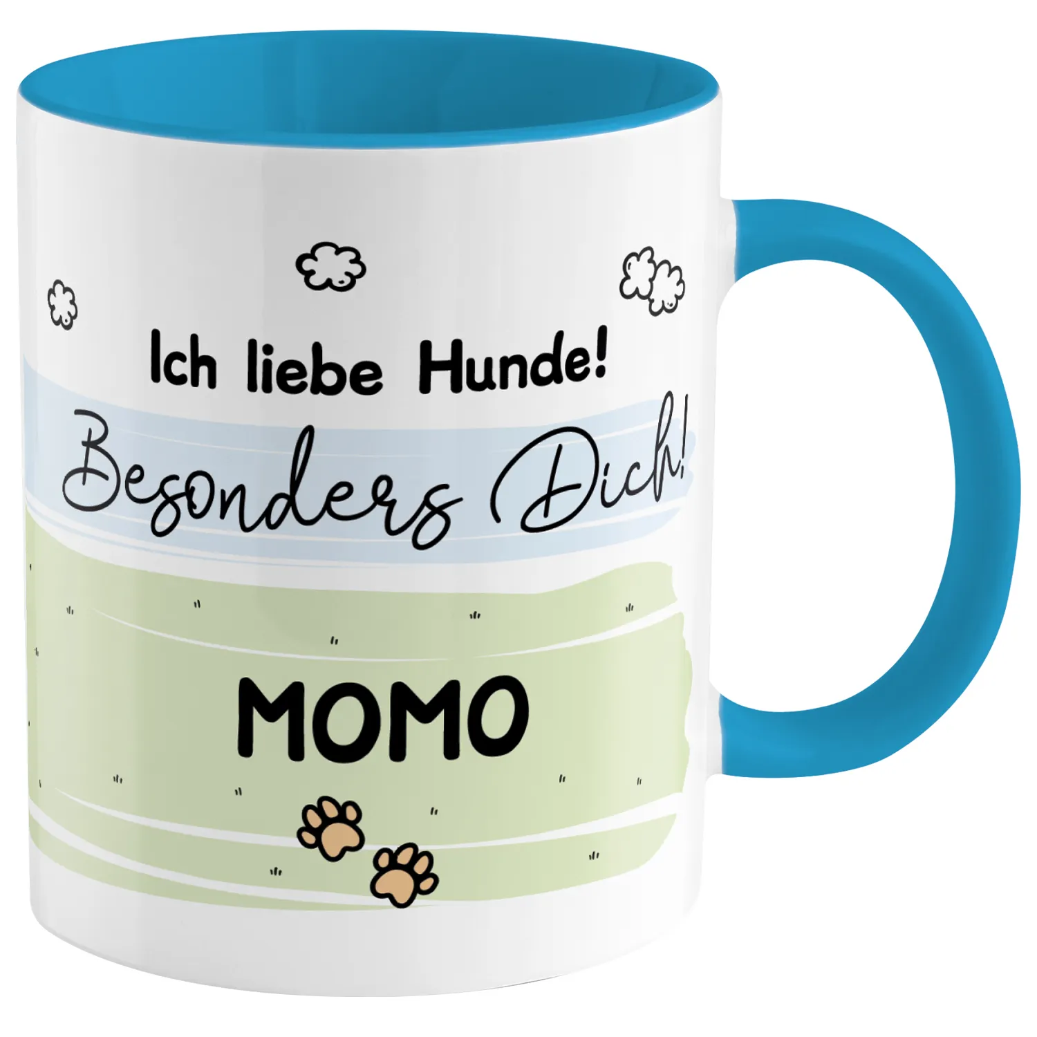 Personalisierbare Tasse »Ich liebe Hunde! ...« mit Name, blau