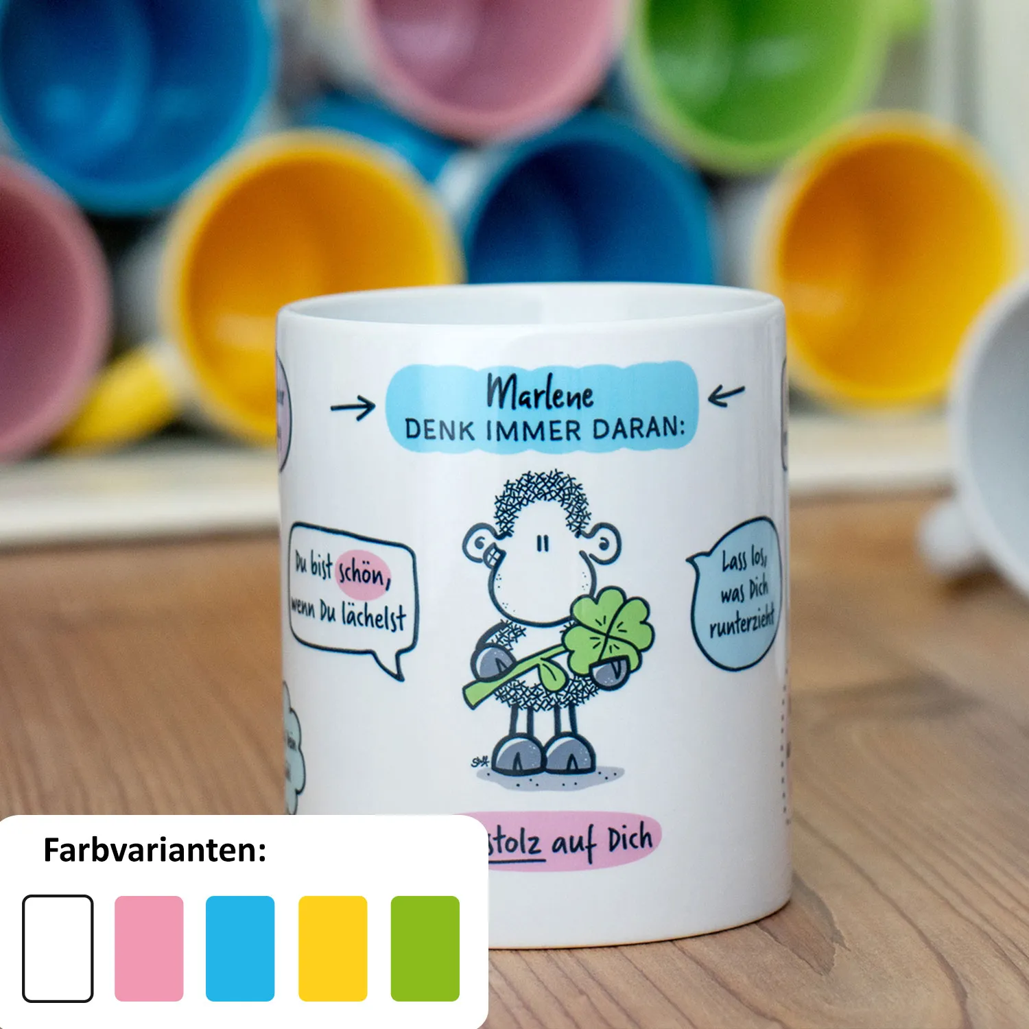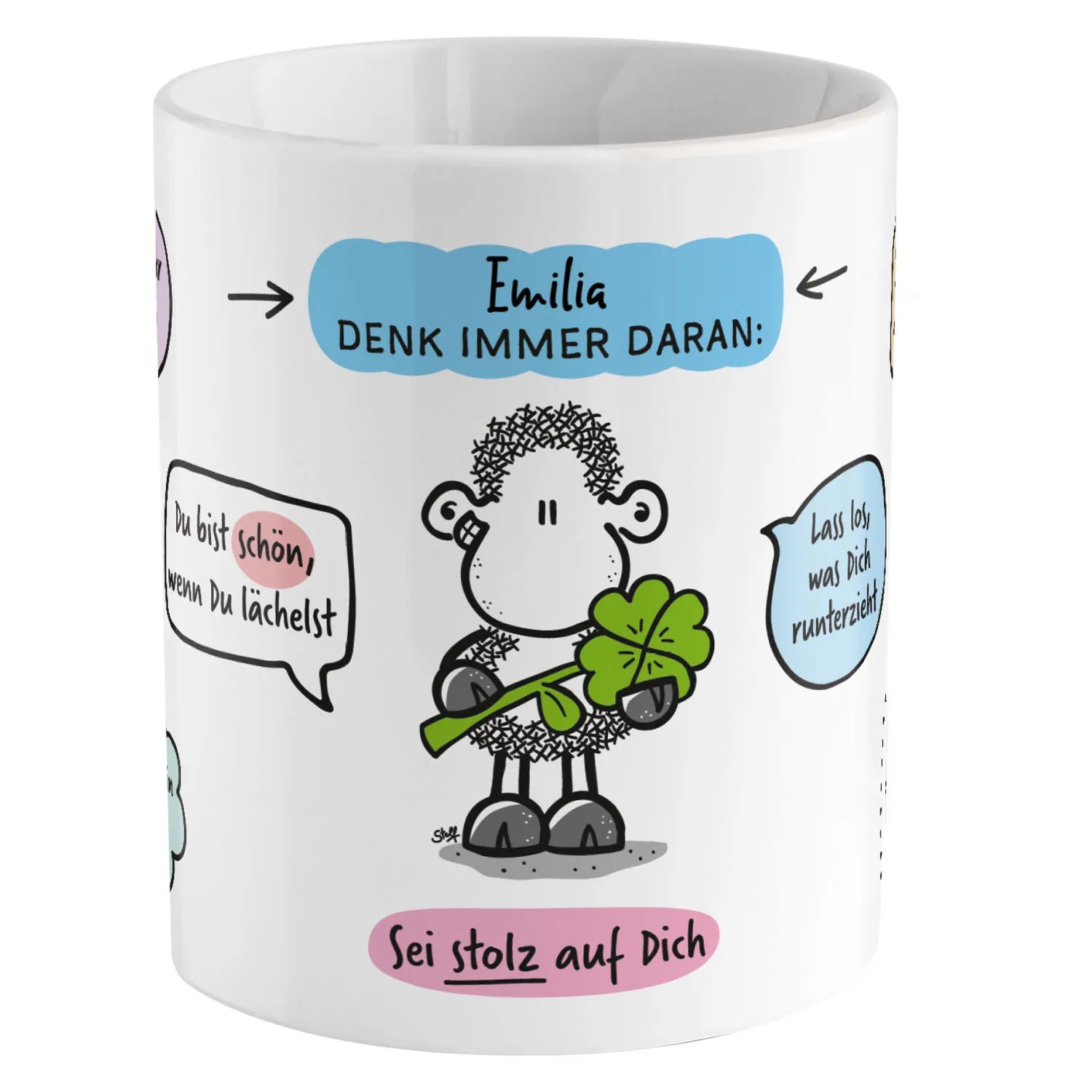 Du bist einzigartig. Du bist stark. Du bist wundervoll, genau so wie Du bist. Diese personalisierte Tasse im sheepworld Style soll Dich daran erinnern, dass Du an Dich glauben sollst. Dass Du all Deine Träume verwirklichen kannst und dass Du alles schaffen kannst, was Du Dir vornimmst. Die motivierenden Sprüche auf dieser Tasse sollen Dich jeden Morgen daran erinnern, wie großartig Du bist. Sie sollen Dir Kraft geben und Dich dazu ermutigen, Dein volles Potenzial auszuschöpfen. Denn Du verdienst es, glücklich zu sein und erfolgreich zu werden.