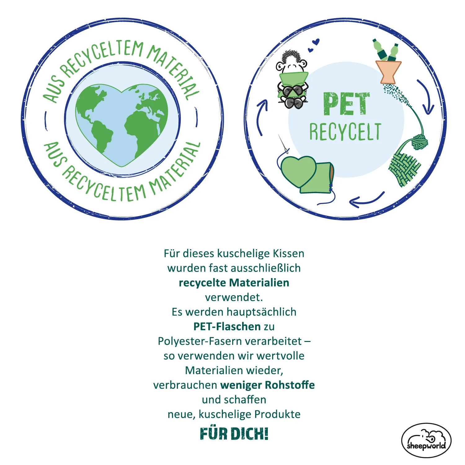- Material: Hülle & Füllung recyceltes Polyester
