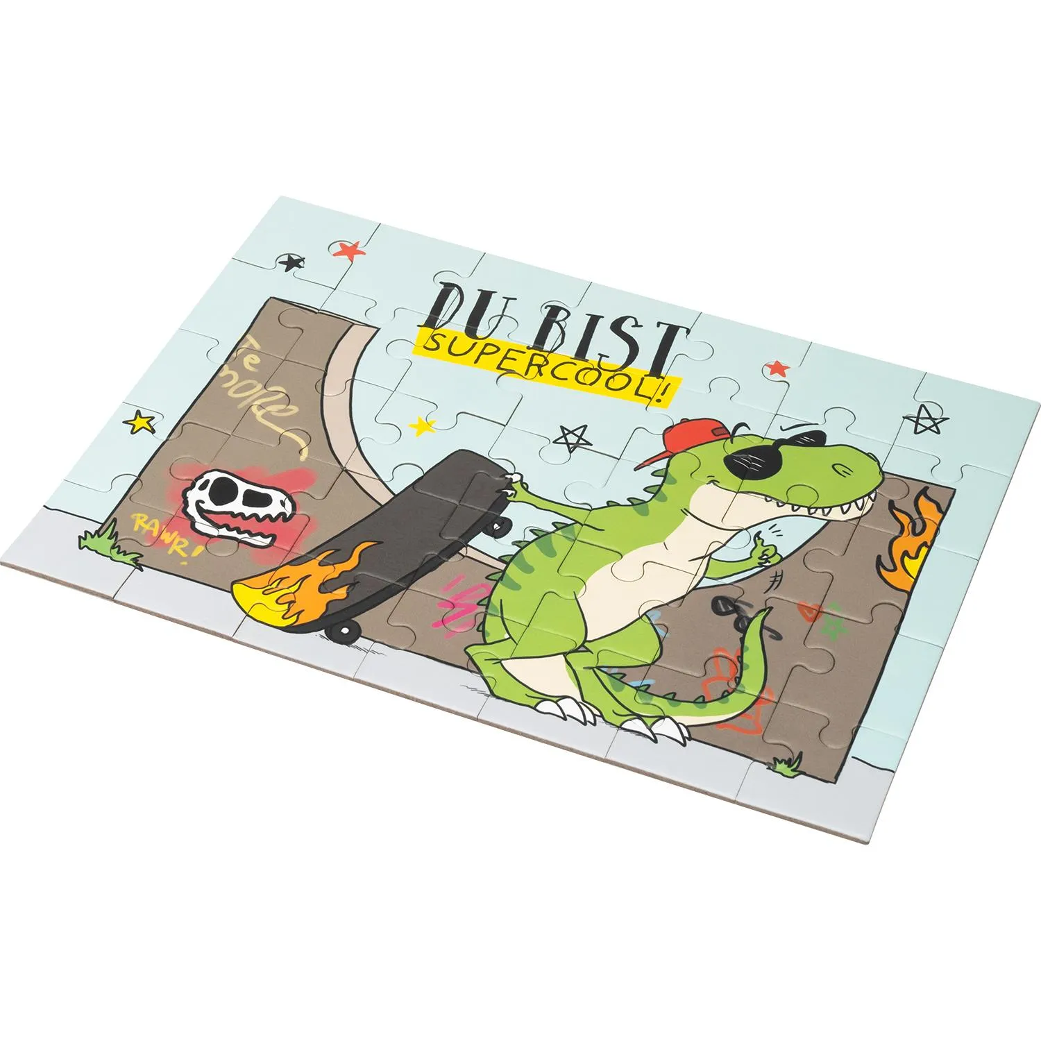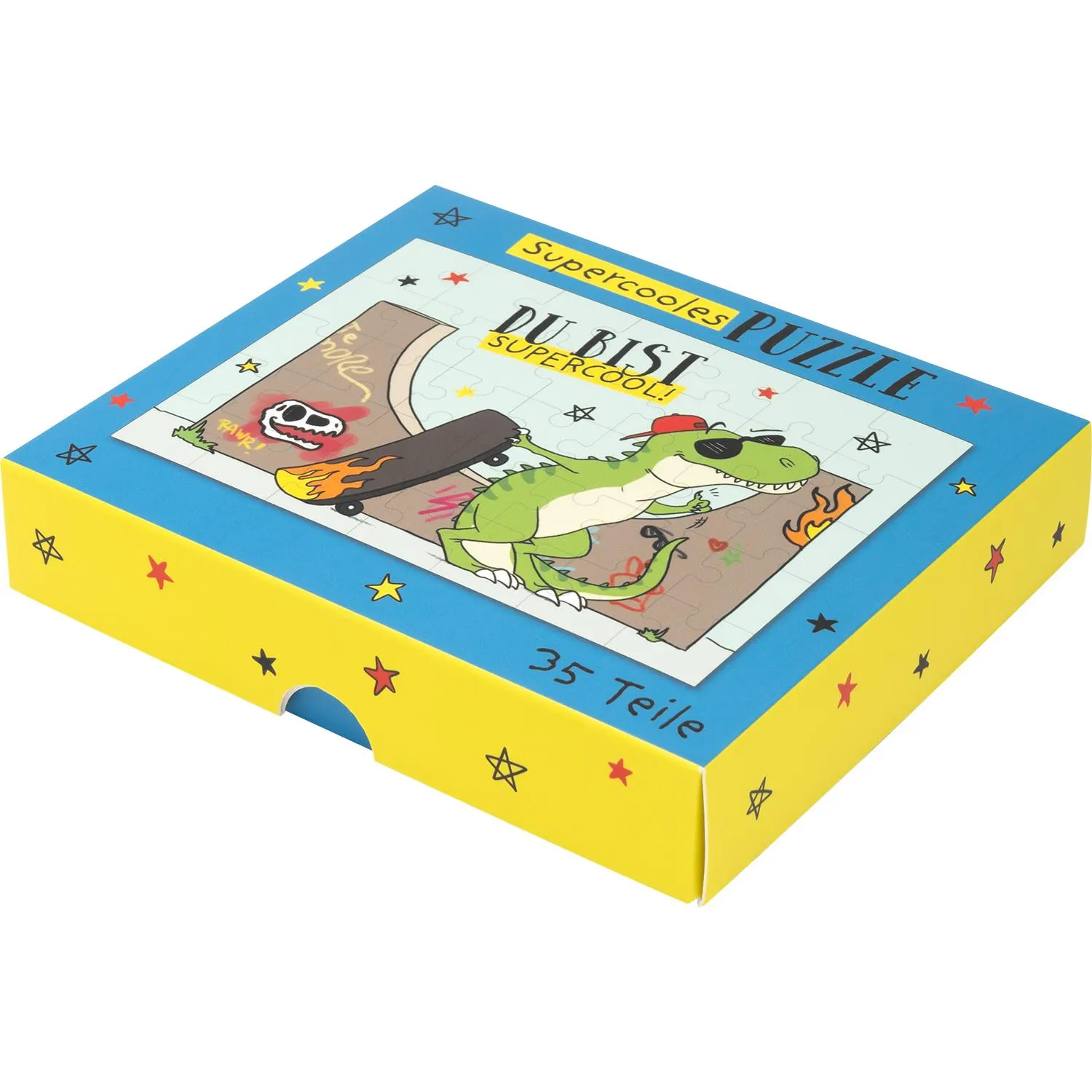 Überrasche Deinen abenteuerlustigen Dino-Fan mit diesem witzigen Puzzle-Set und lass ihn in die Welt der Dinosaurier eintauchen. Mit 35 Teilen ist das Puzzle sowohl für jüngere als auch für ältere Kinder geeignet und bietet eine herausfordernde, aber dennoch unterhaltsame Erfahrung. Die robusten Puzzle-Teile sind langlebig und einfach zu handhaben, perfekt für kleine Hände.