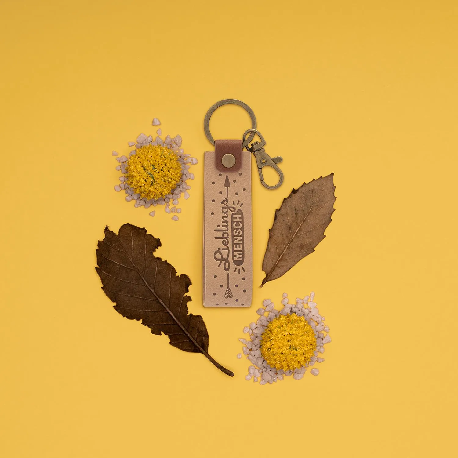 Dieser hübsche Schlüsselanhänger steht ganz im Zeichen der Natur und ist für Deinen Lieblingsmenschen bestimmt! Mit dem Karabinerverschluss kannst Du den Schlüsselanhänger ganz einfach an Deinem Schüsselbund befestigen und hast somit ein tolles Accessoire.