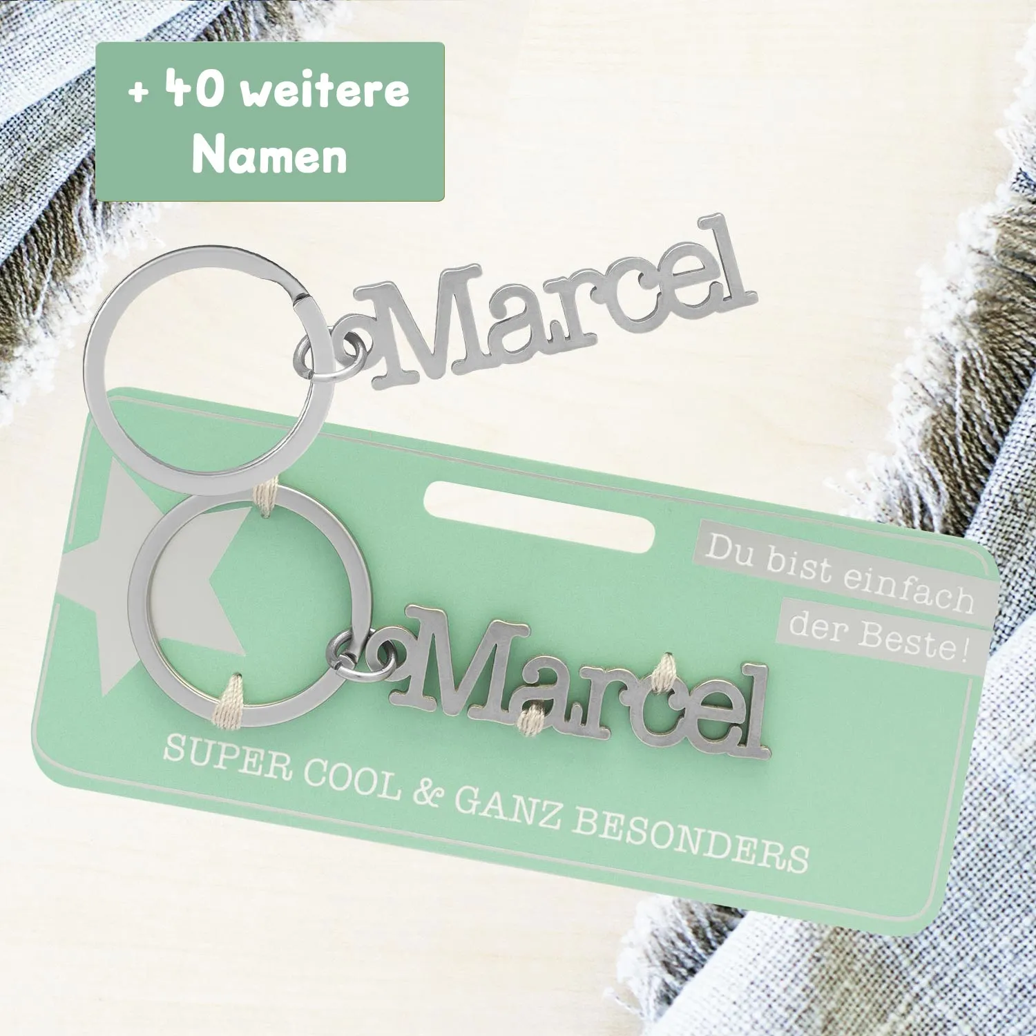 "Der Name Marcel hat einen lateinischen Ursprung und bedeutet ""der Junge"" oder ""der Krieger"". Männer mit diesem Namen sind oft energiegeladen und haben eine lebhafte Persönlichkeit. Sie sind auch sehr gesellig und haben viele Freunde. Marcels sind bekannt für ihre positive Einstellung und ihre Fähigkeit, andere zu unterhalten. Sie sind oft sehr loyal und stehen immer für ihre Freunde und Familie ein. Mit einem Namensschlüsselanhänger mit dem Namen Marcel kannst Du Deine lebhafte Natur und Deinen Sinn für Humor zum Ausdruck bringen."