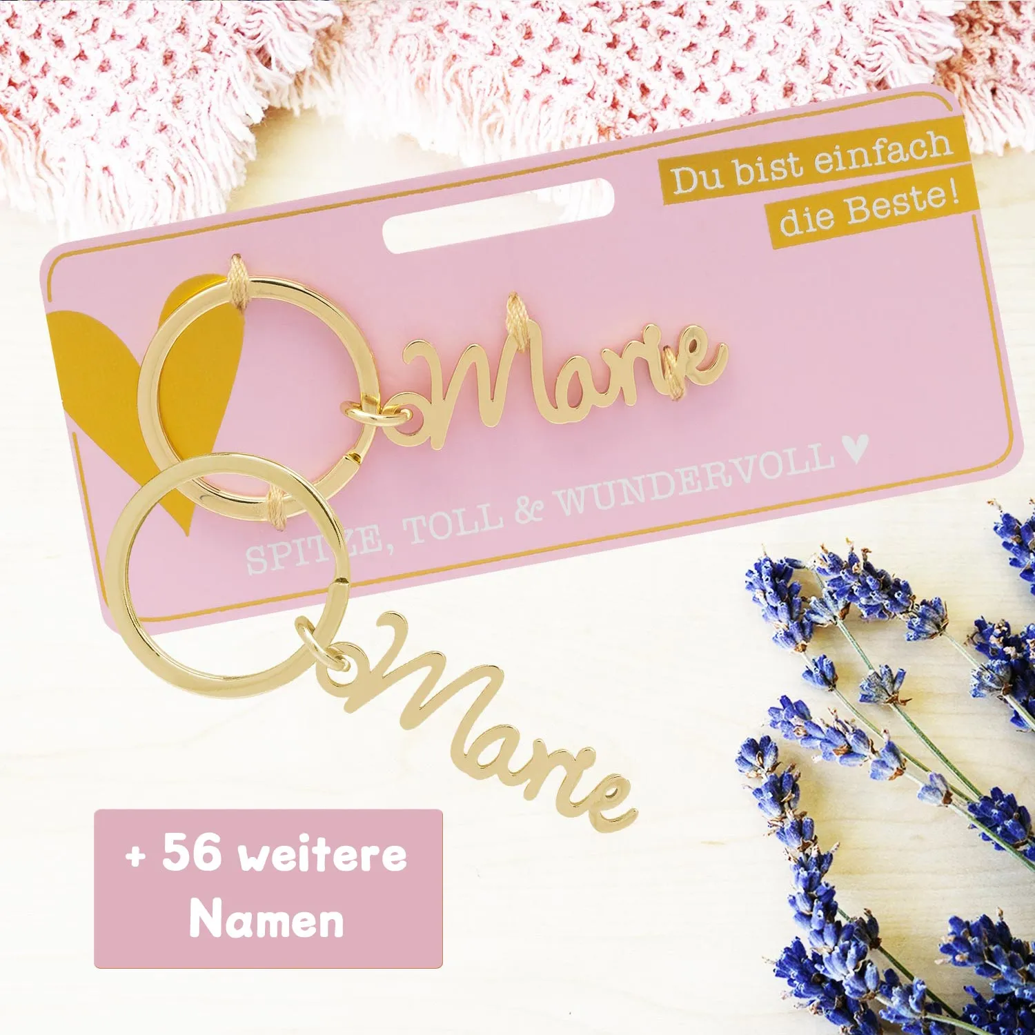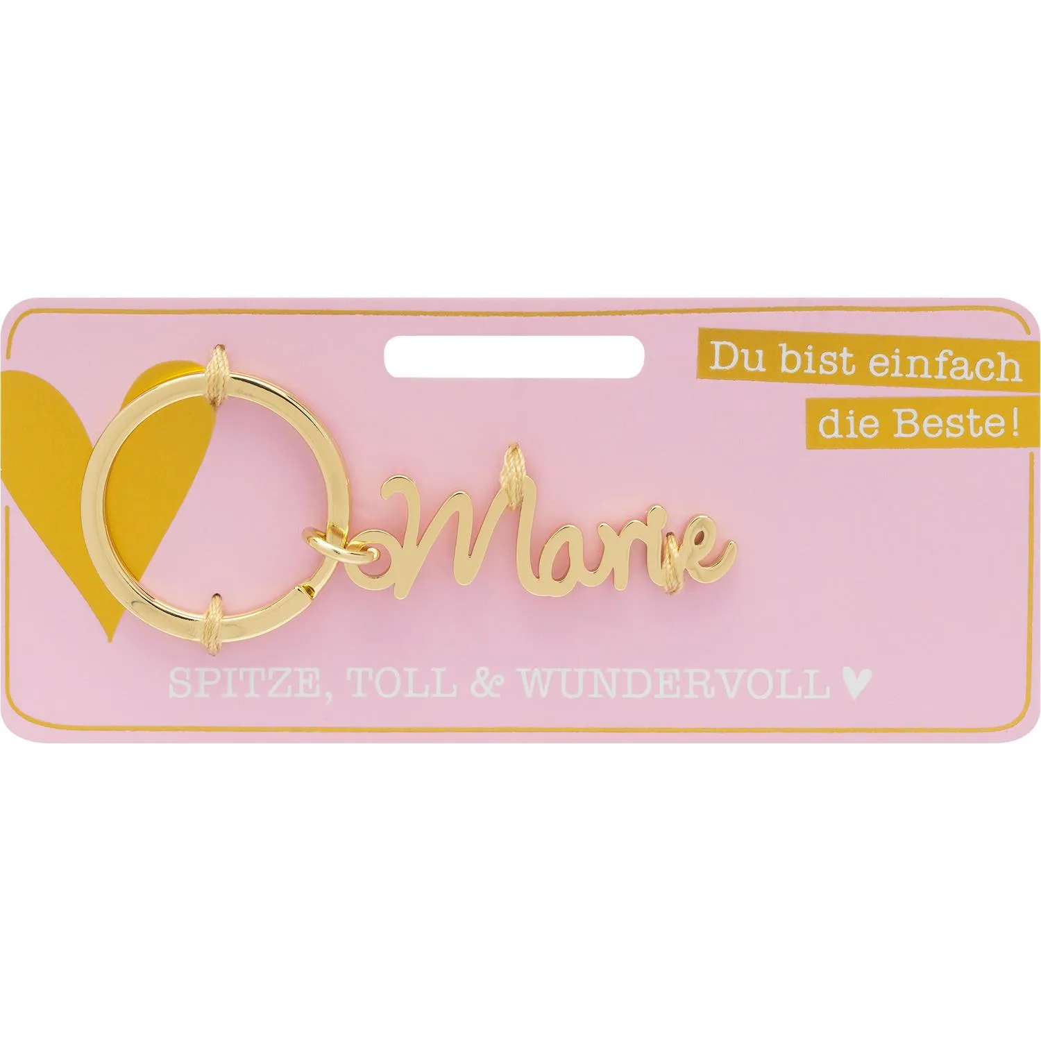 Der Name Marie hat einen lateinischen Ursprung und bedeutet "die von Gott Geliebte" oder "die Bittere". Frauen mit diesem Namen sind oft sehr liebevoll und haben eine positive Ausstrahlung. Sie sind auch sehr einfühlsam und haben ein großes Herz für andere Menschen. Maries sind bekannt für ihre Großzügigkeit und ihre Fähigkeit, anderen zu helfen. Sie sind oft sehr verantwortungsbewusst und zuverlässig. Mit einem Namensschlüsselanhänger mit dem Namen Marie kannst Du Deine Liebe und Fürsorge zum Ausdruck bringen.