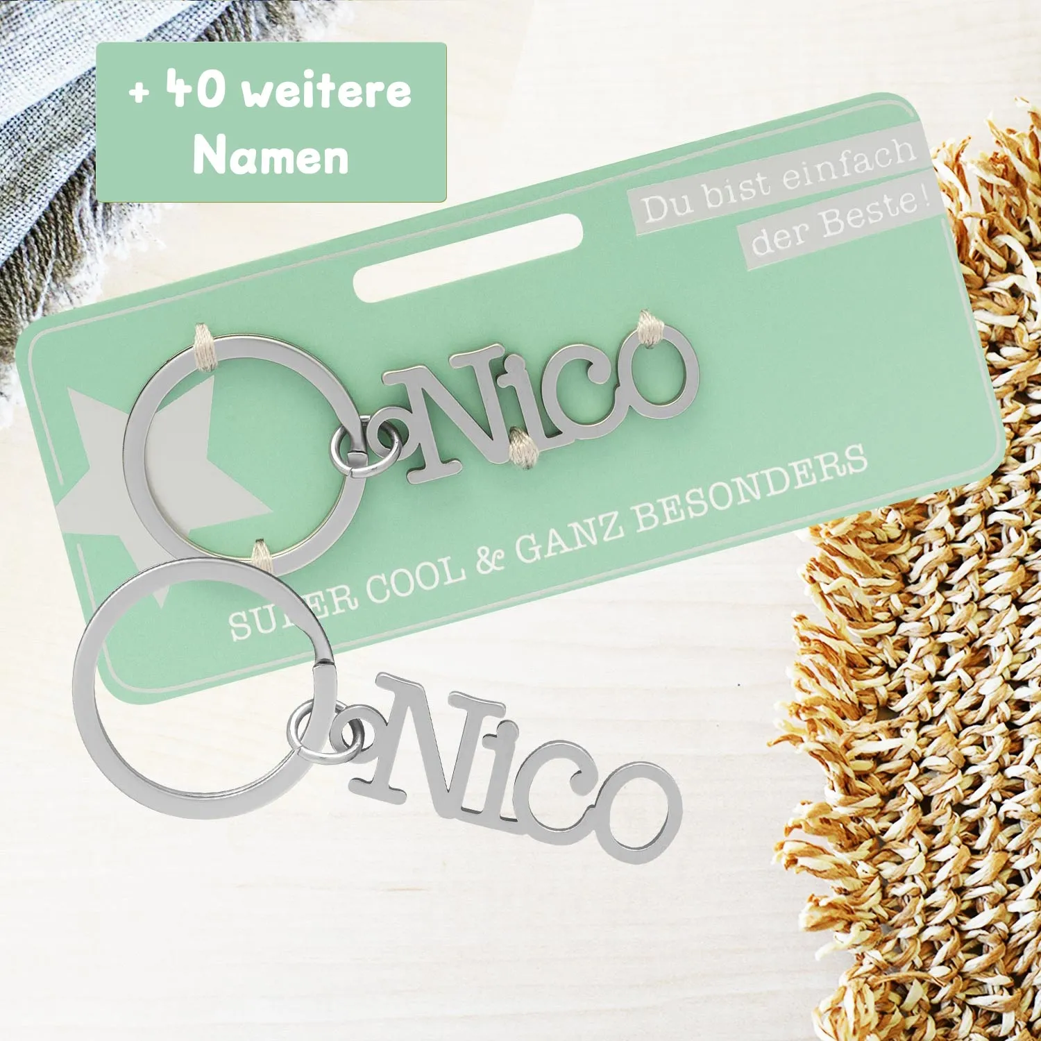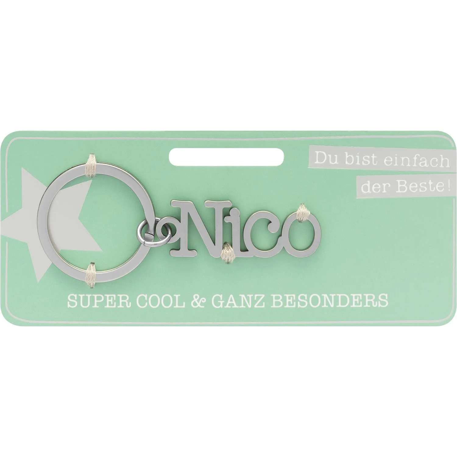 "Der Name Nico hat einen griechischen Ursprung und ist eine Kurzform von Nikolaus, was ""Sieg des Volkes"" bedeutet. Männer mit diesem Namen sind oft sehr gesellig und haben eine freundliche Ausstrahlung. Sie sind auch sehr mitfühlend und haben ein großes Herz für andere Menschen. Nicos sind bekannt für ihre Großzügigkeit und ihre Fähigkeit, andere zu unterstützen. Sie sind oft sehr loyal und stehen immer für ihre Freunde und Familie ein. Mit einem Namensschlüsselanhänger mit dem Namen Nico kannst Du Deine Geselligkeit und Freundlichkeit zum Ausdruck bringen."
