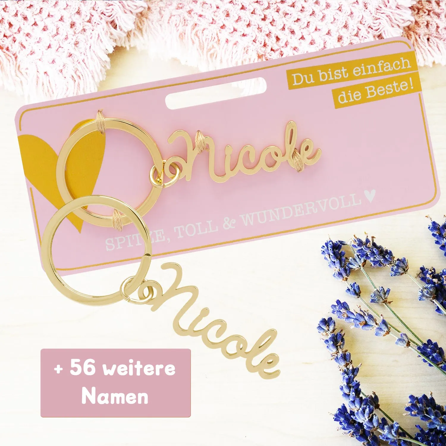 Der Name Nicole hat einen griechischen Ursprung und bedeutet "die Siegerin" oder "die Siegreiche". Frauen mit diesem Namen sind oft sehr ehrgeizig und haben eine starke Persönlichkeit. Sie sind auch sehr intelligent und haben eine schnelle Auffassungsgabe. Nicoles sind bekannt für ihre Entschlossenheit und ihre Fähigkeit, Hindernisse zu überwinden. Sie sind oft sehr loyal und stehen immer für ihre Freunde und Familie ein. Mit einem Namensschlüsselanhänger mit dem Namen Nicole kannst Du Deine Siegeswillen und Entschlossenheit zum Ausdruck bringen.