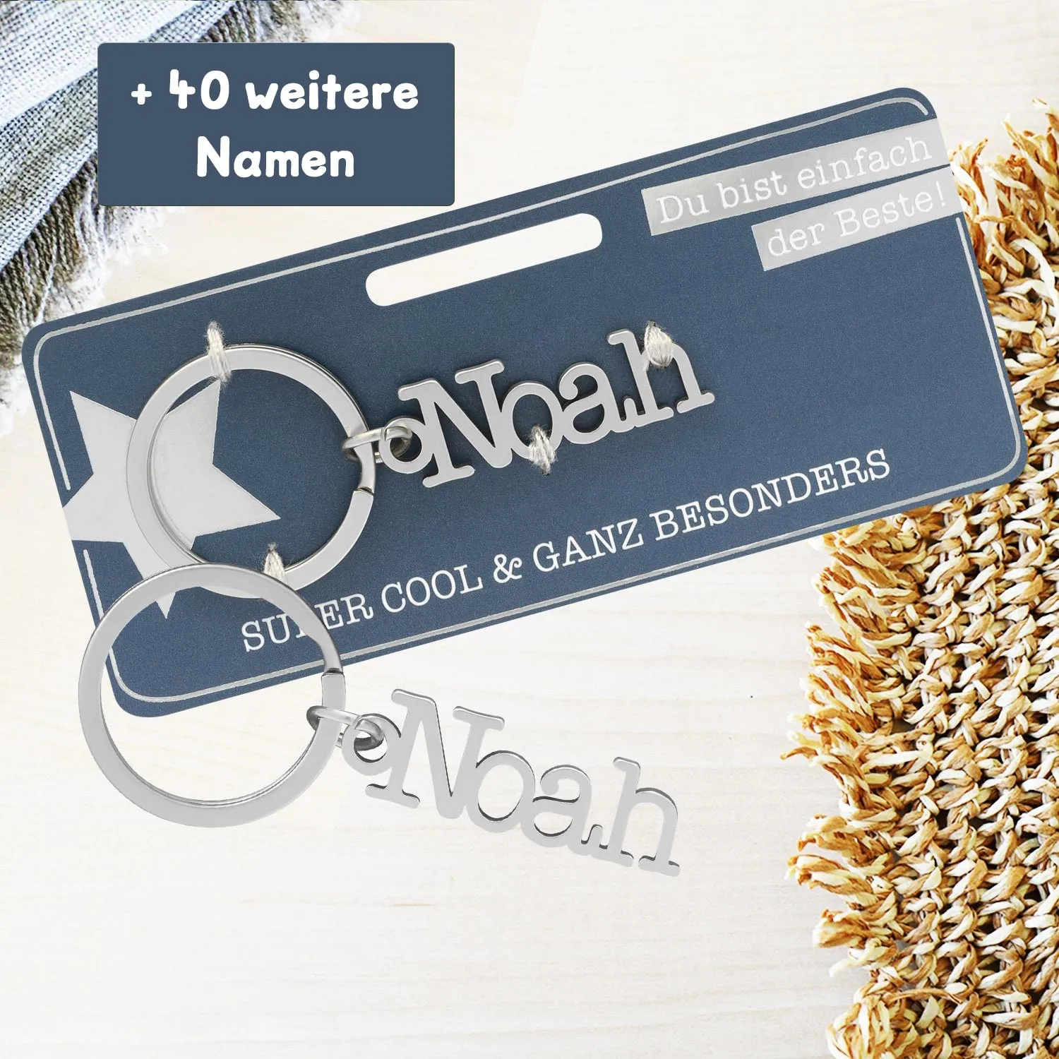 "Der Name Noah hat einen hebräischen Ursprung und bedeutet ""Ruhe"" oder ""Trost"". Männer mit diesem Namen sind oft sehr besonnen und haben eine ruhige Ausstrahlung. Sie sind auch sehr einfühlsam und haben ein großes Herz für andere Menschen. Noahs sind bekannt für ihre Großzügigkeit und ihre Fähigkeit, anderen Trost zu spenden. Sie sind oft sehr loyal und stehen immer für ihre Freunde und Familie ein. Mit einem Namensschlüsselanhänger mit dem Namen Noah kannst Du Deine Besonnenheit und Mitgefühl zum Ausdruck."