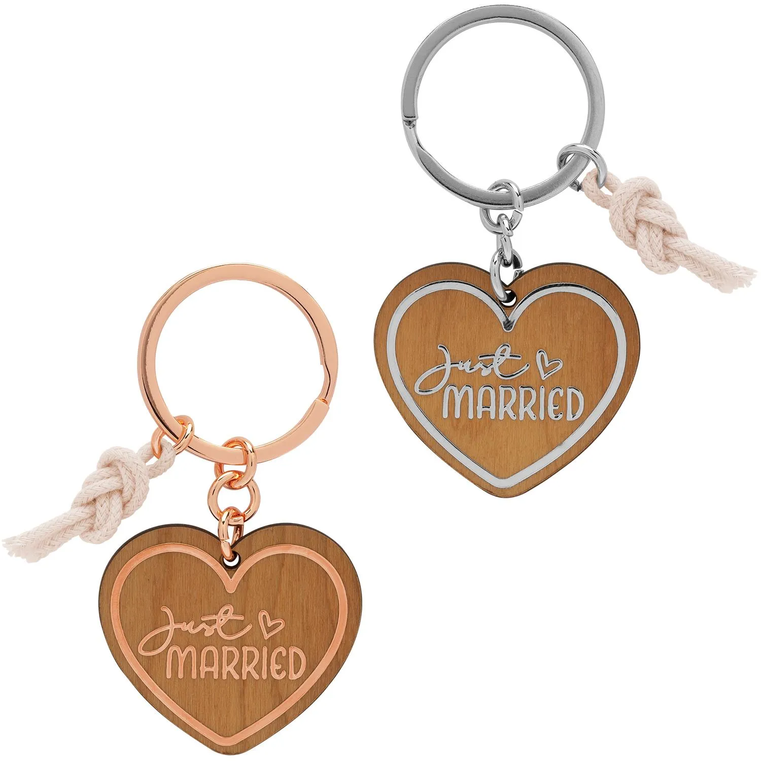Stell Dir vor, Du und Dein Partner halten nach der Trauung Schlüsselanhänger in den Händen, die Eure Liebe besiegeln. Die herzförmigen Holz-Anhänger mit "just married" in Roségold und Silber sind das perfekte Symbol für Euren neuen Lebensweg. Jedes Mal, wenn Du Deine Schlüssel zur Hand nimmst, erinnern sie Dich an den Tag, an dem alles begann.