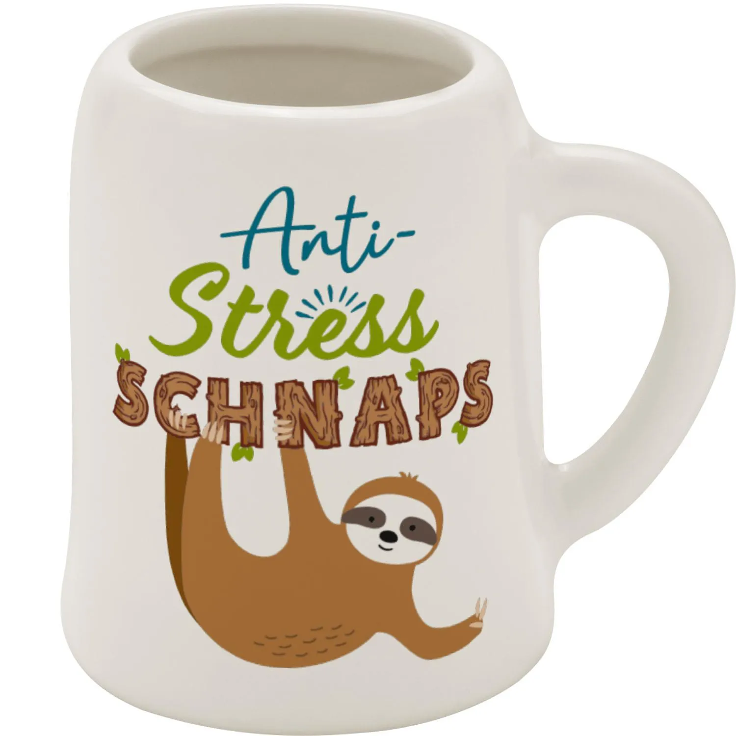 Der Schnapskrug 'Anti-Stress Schnaps' mit einem gemütlichen Faultier, das lässig an den Buchstaben hängt, sorgt für Entspannung pur. Perfekt für alle, die nach einem langen Tag einfach mal die Seele baumeln lassen und den Stress wegschnappen wollen. Ein humorvolles Geschenk, das daran erinnert: Manchmal hilft nur ein kleiner Schluck zur Entspannung!