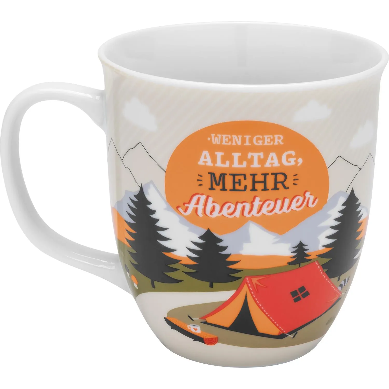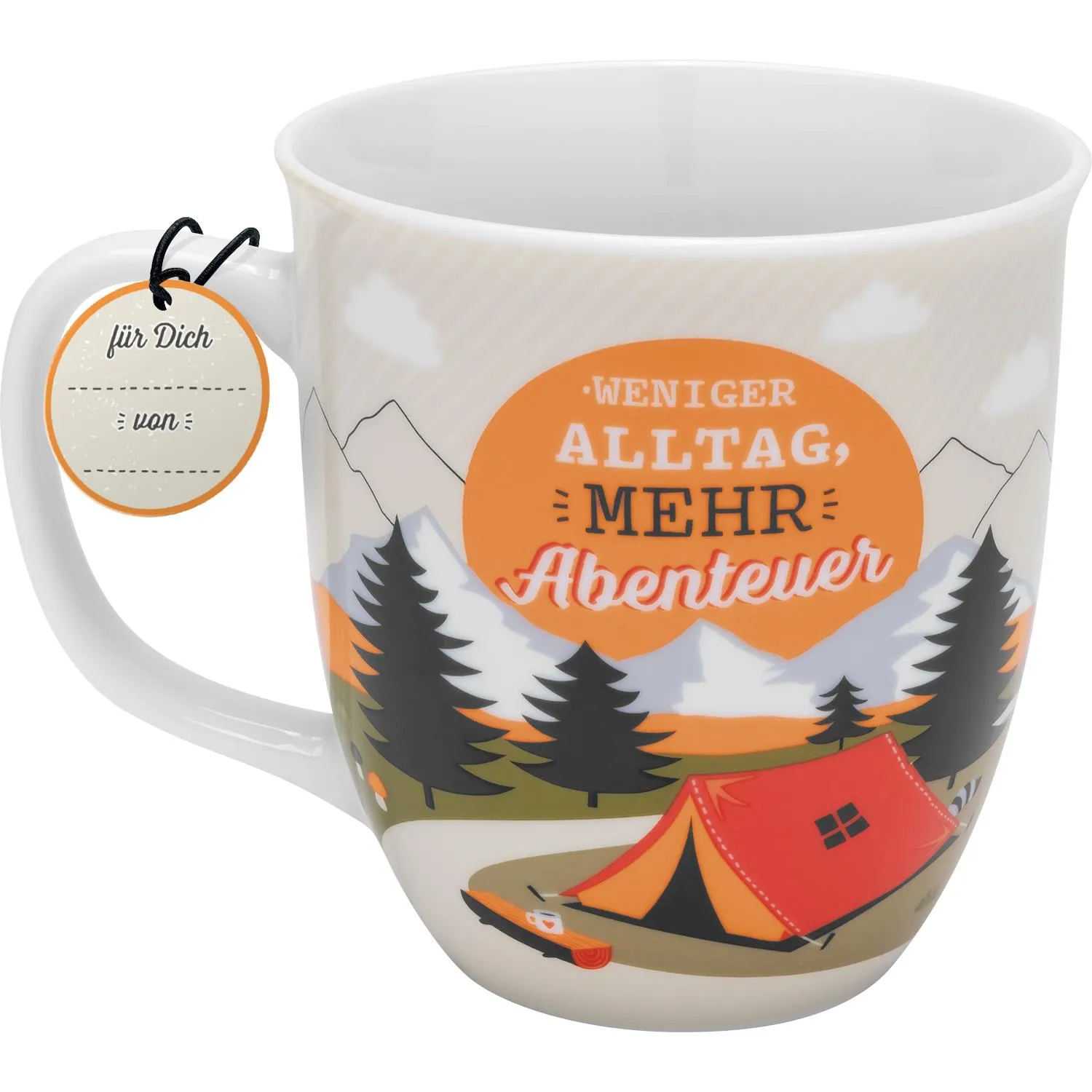 Tauche ein in die Welt der Abenteuer mit unserer einzigartigen Tasse, verziert mit einem atemberaubenden Bergmotiv. Der Spruch "Weniger Alltag, mehr Abenteuer" erinnert Dich daran, dass das Leben voller Möglichkeiten steckt, die nur darauf warten, entdeckt zu werden.