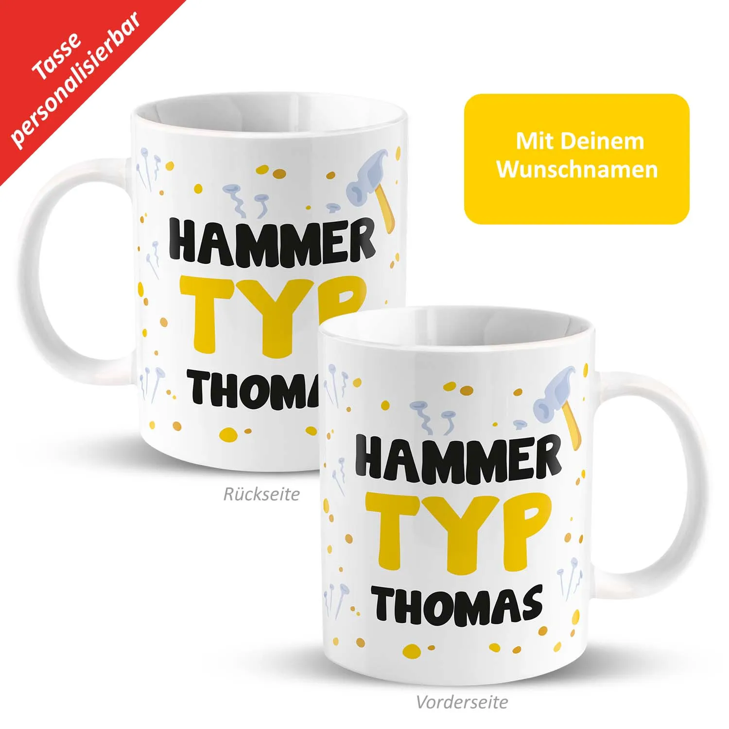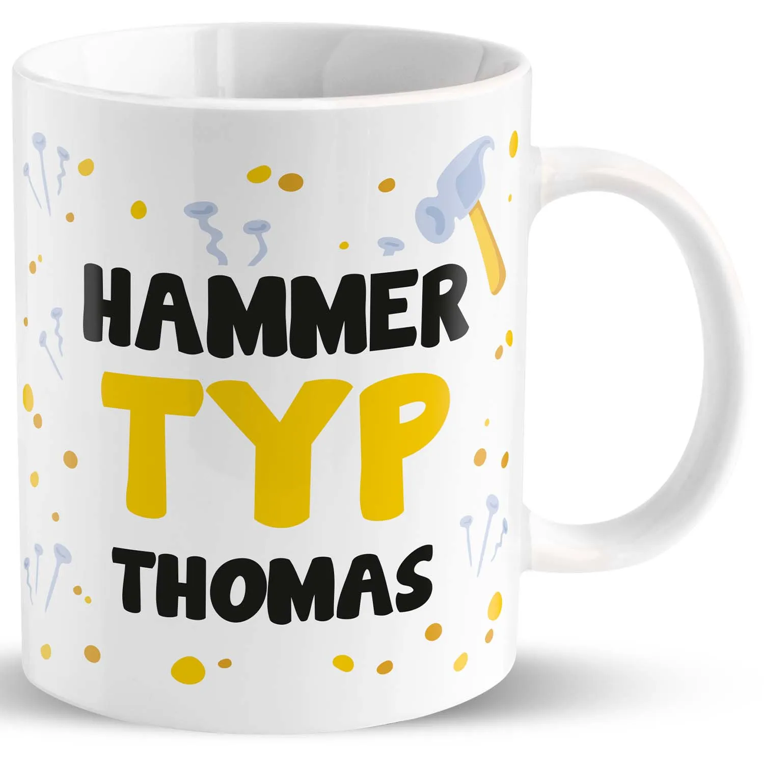 Jeder Hammertyp muss auch gewürdigt werden! Mit dieser hammergeilen Tasse mit personalisiertem Namen kannst Du Deinem Hammertypen individuell eine große Freude bereiten. Sie eignet sich hervorragend als Geburtstagsgeschenk oder als Liebeserklärung.
