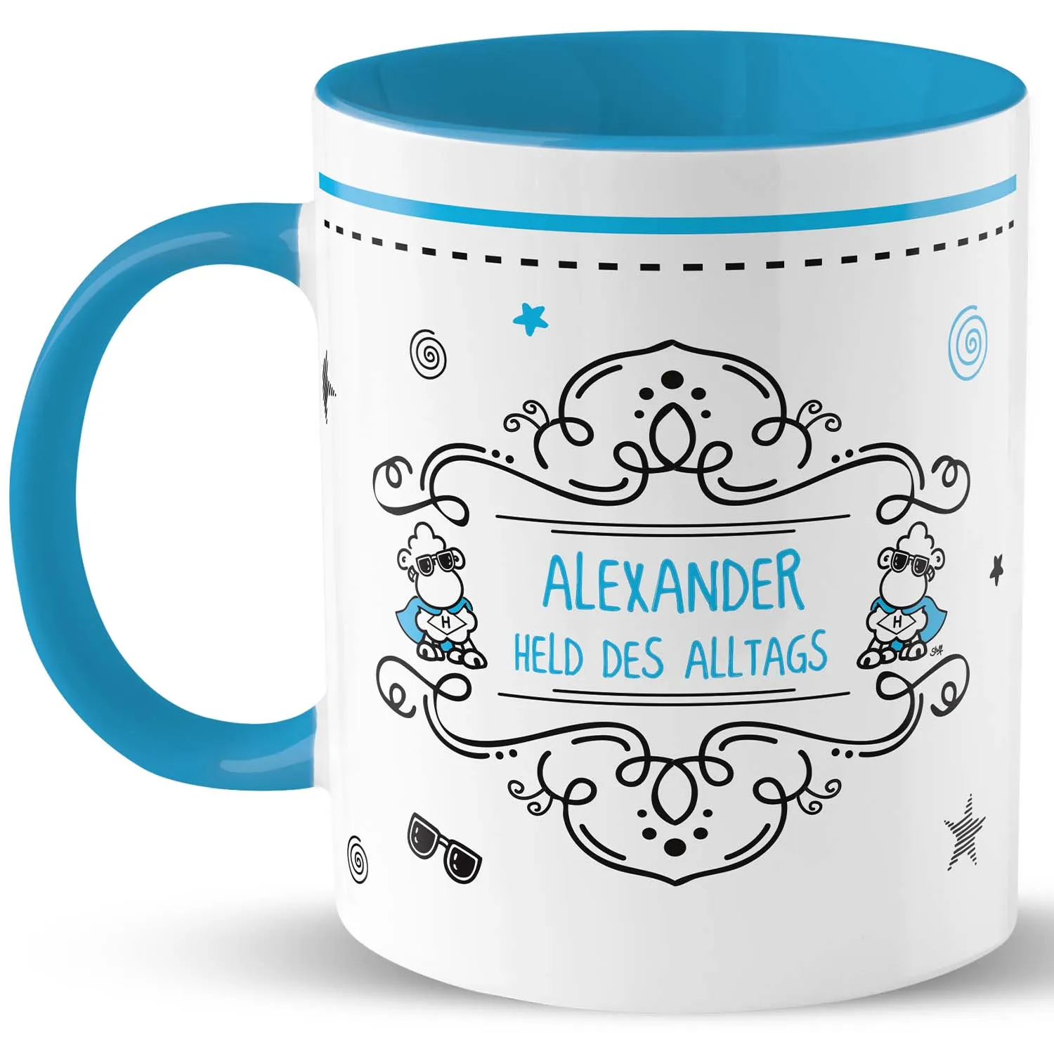 Tasse »Held des Alltags …!« mit Wunschnamen, blau, personalisiert
