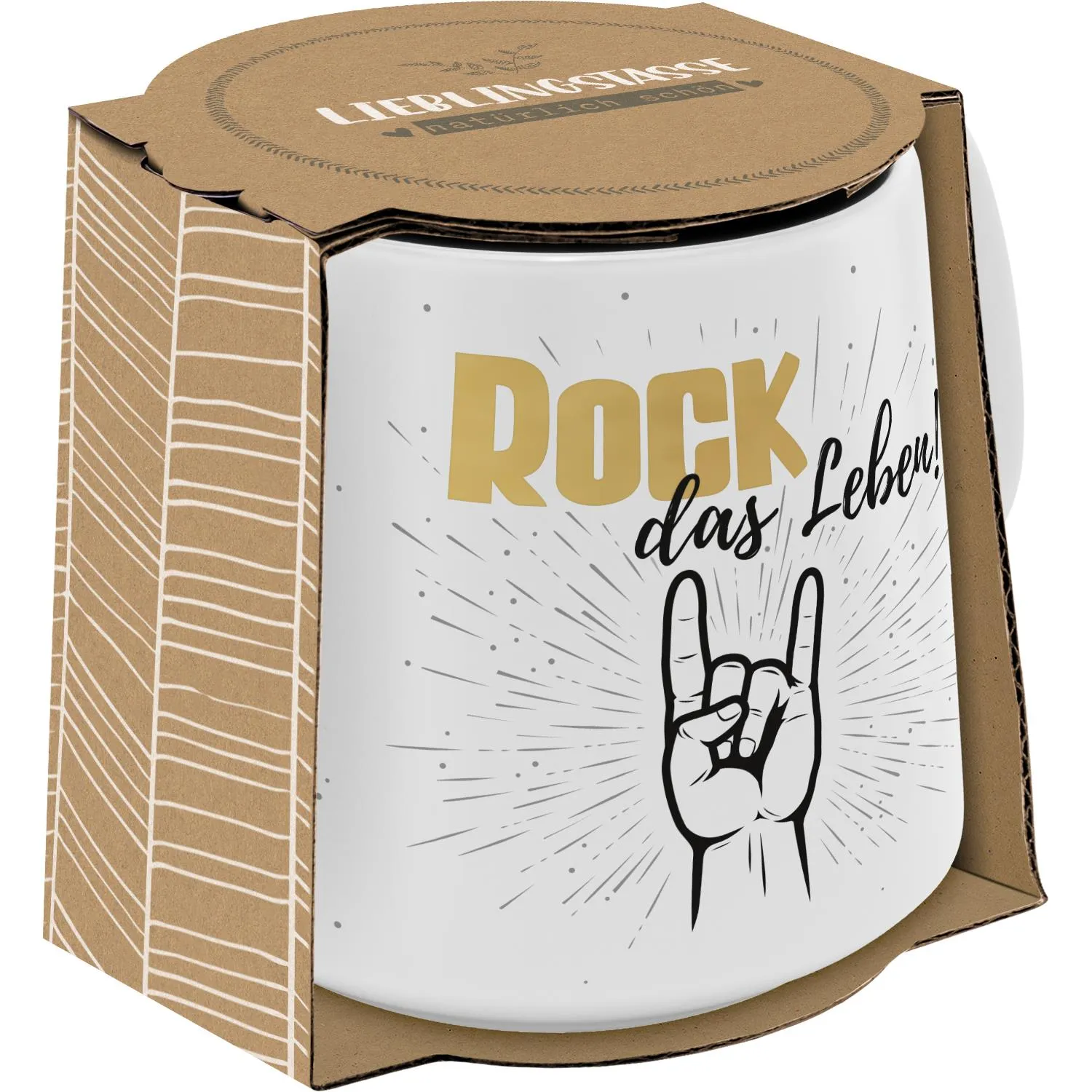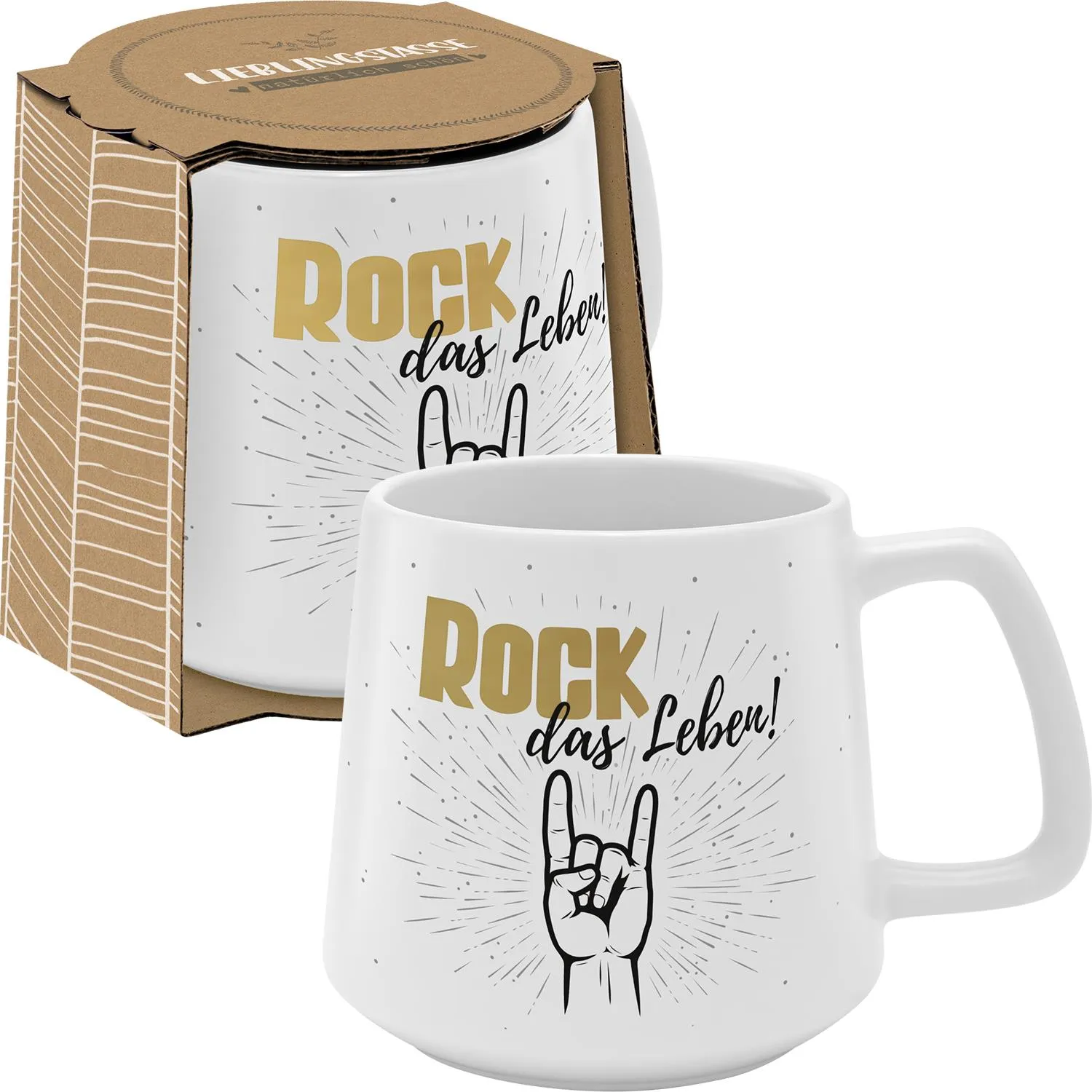 »Rock das Leben« - in jeder Lebenslage! Diese Tasse ist der perfekte Motivator für jeden Tag. Mit dem hochwertigen Golddruck sieht sie auch noch richtig edel auf dem Frühstückstisch aus.