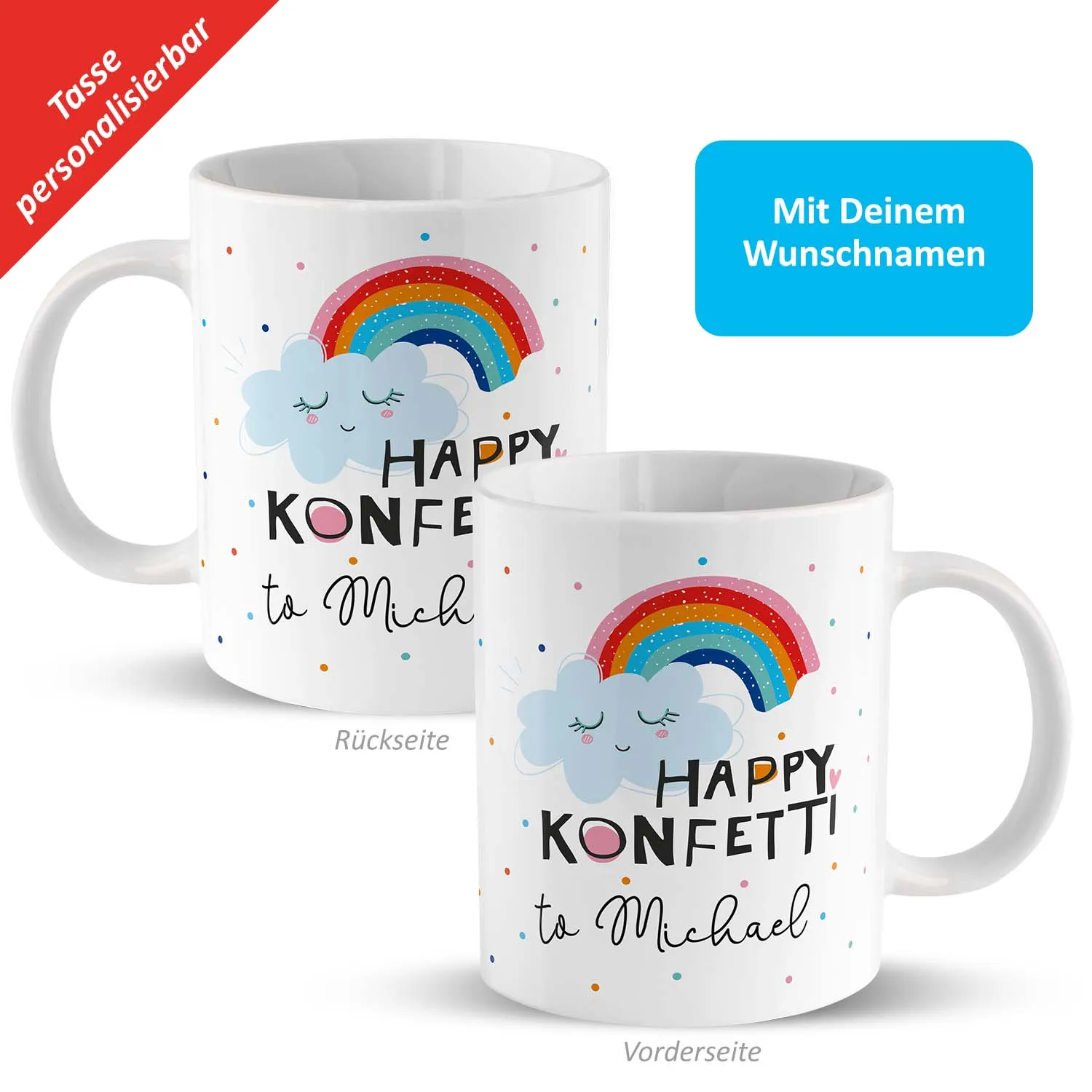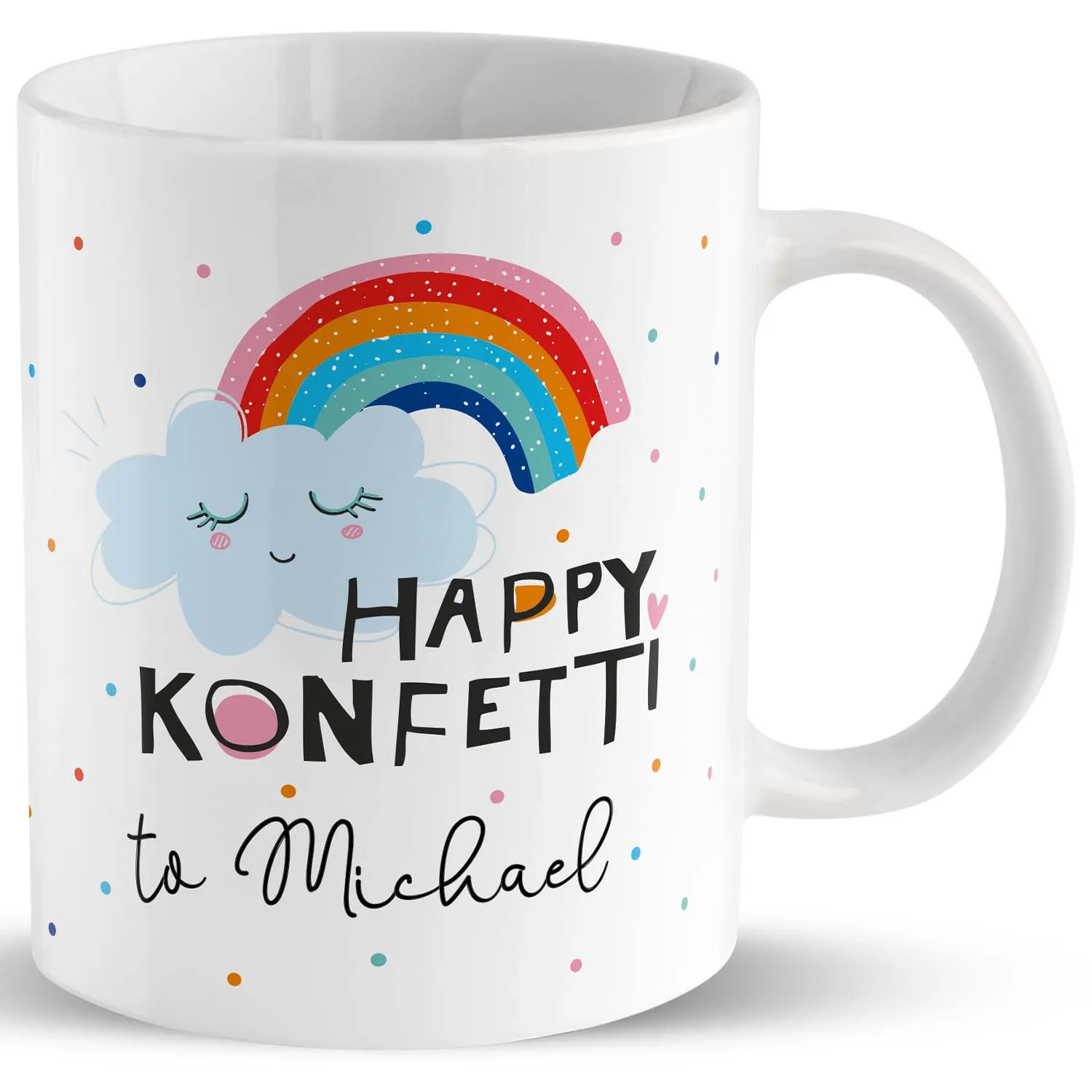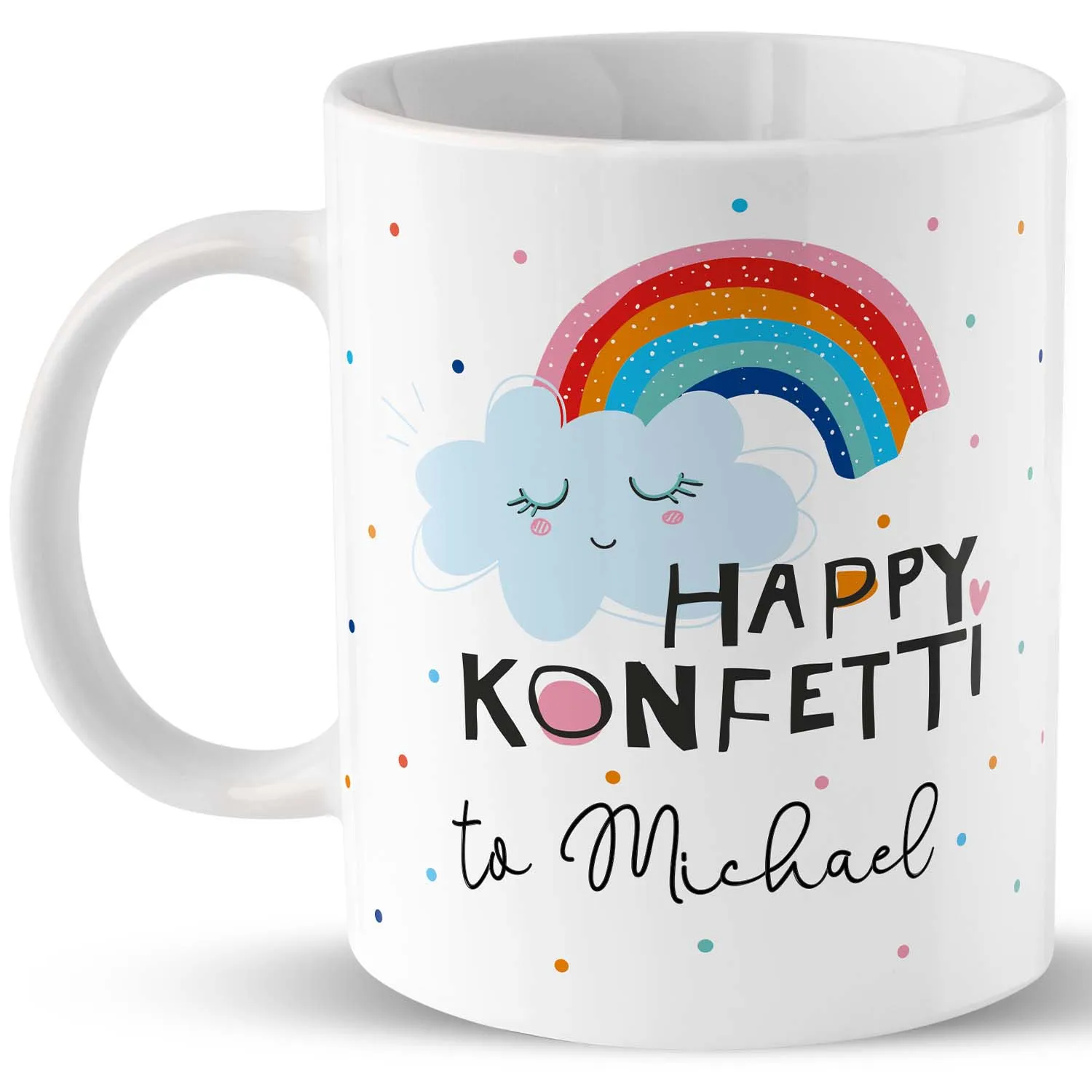 Tasse Motiv »Happy Konfetti to …!« mit Wunschnamen, personalisiert