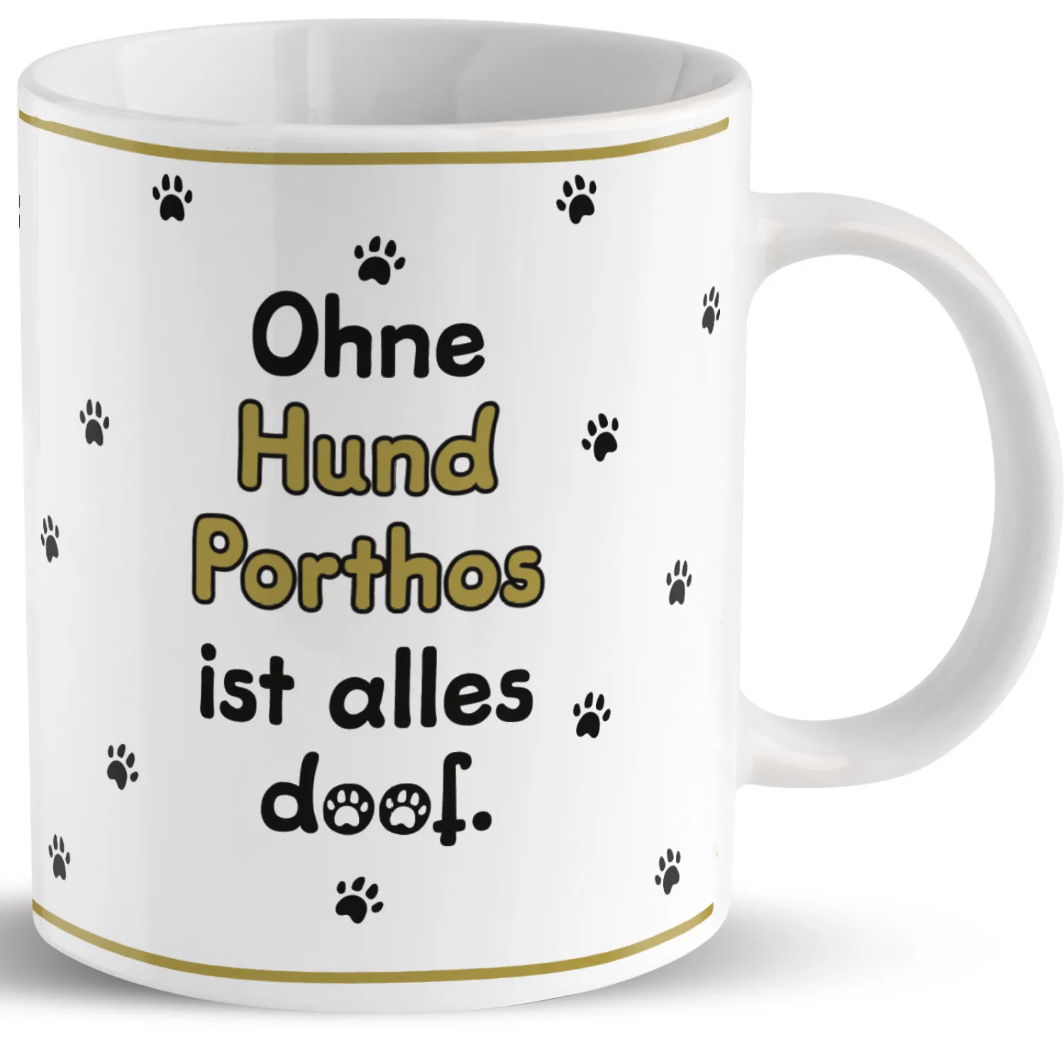 Tasse »Ohne Hund ... ist alles doof.« mit Wunschnamen, weiß, personalisiert