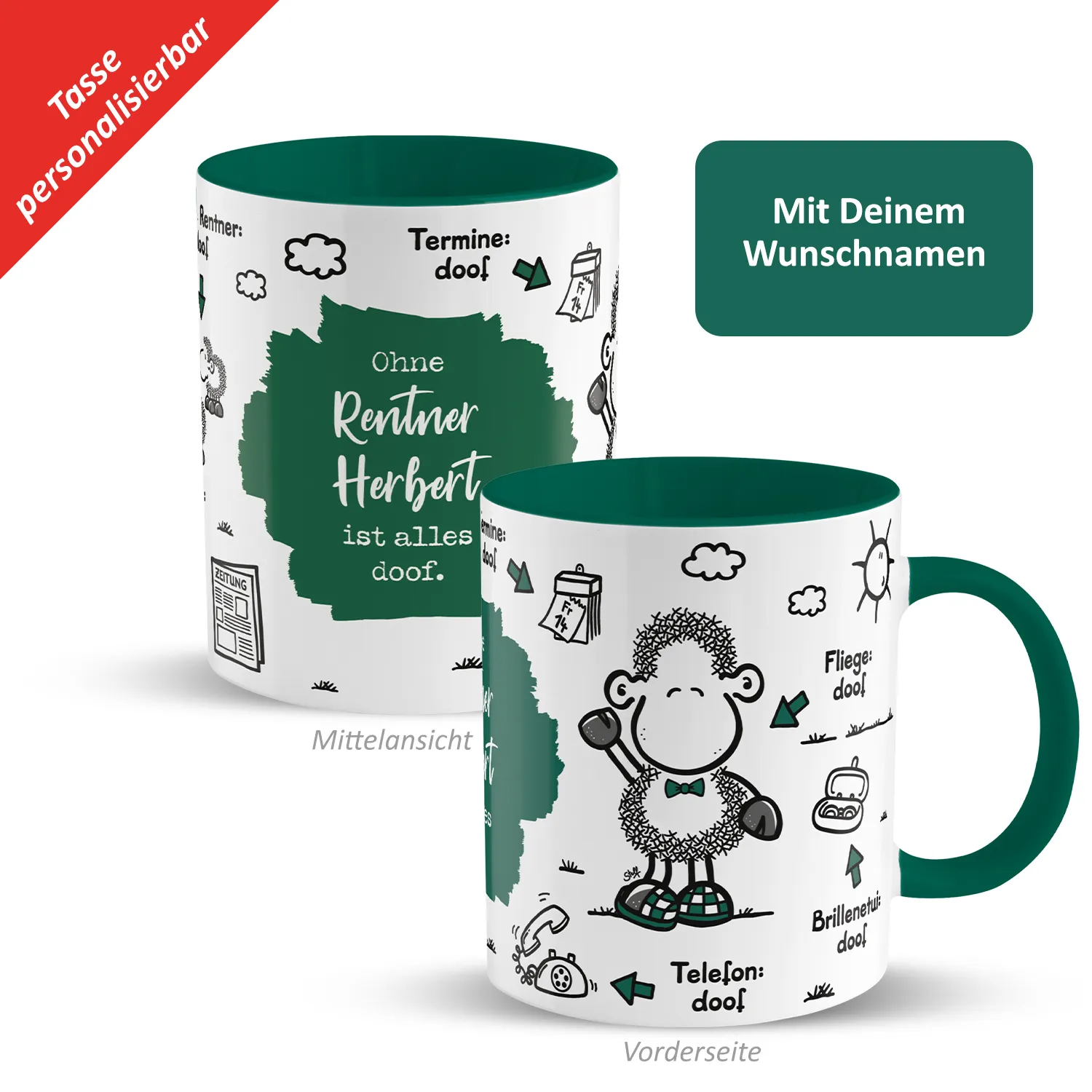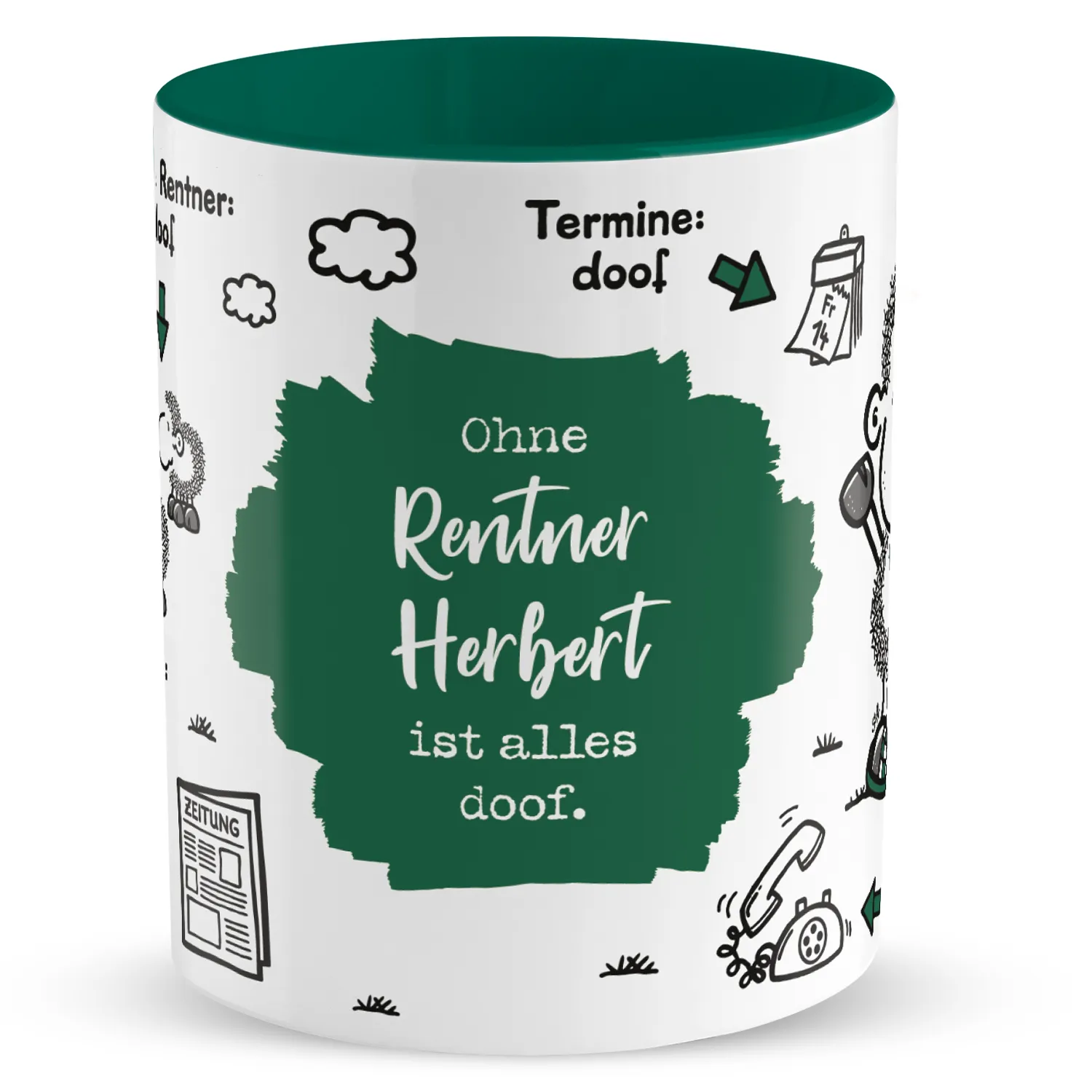 Tasse »Ohne Rentner ... ist alles doof.« mit Wunschnamen, petrol, personalisiert petrol