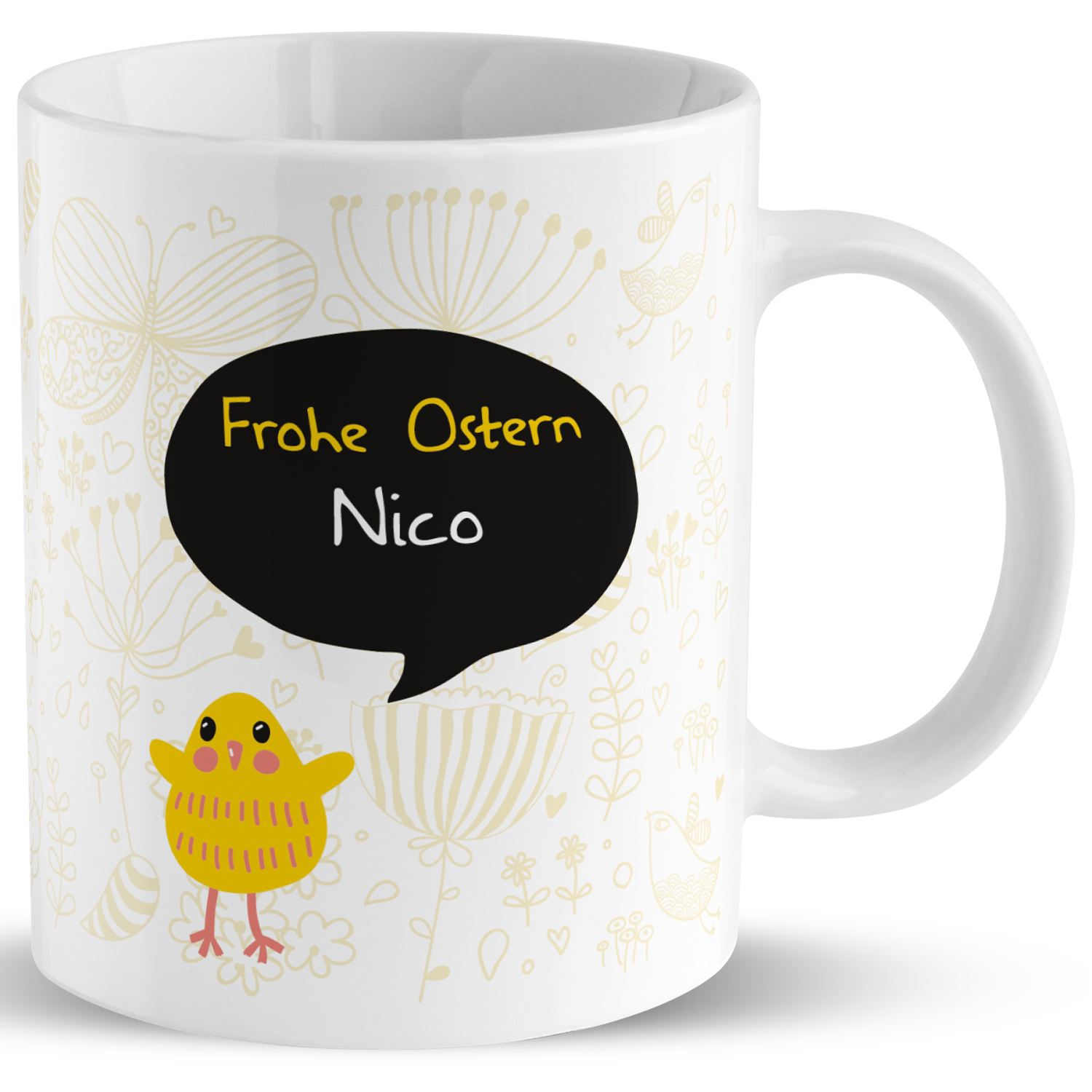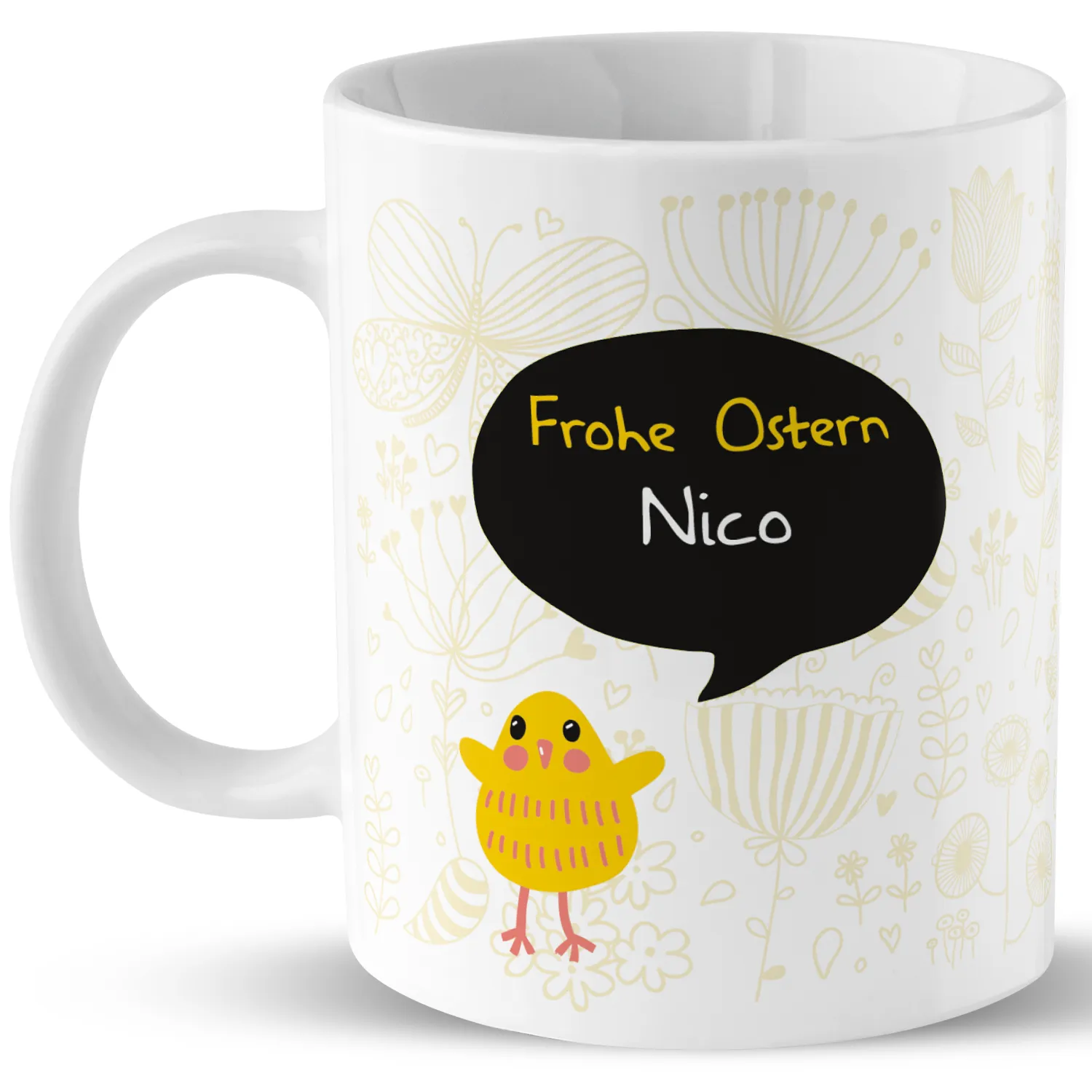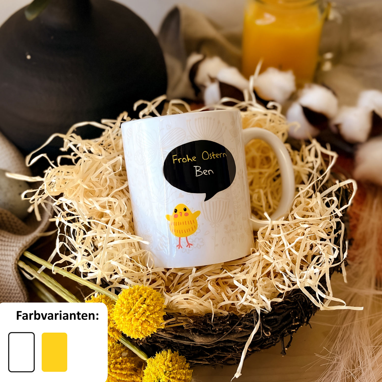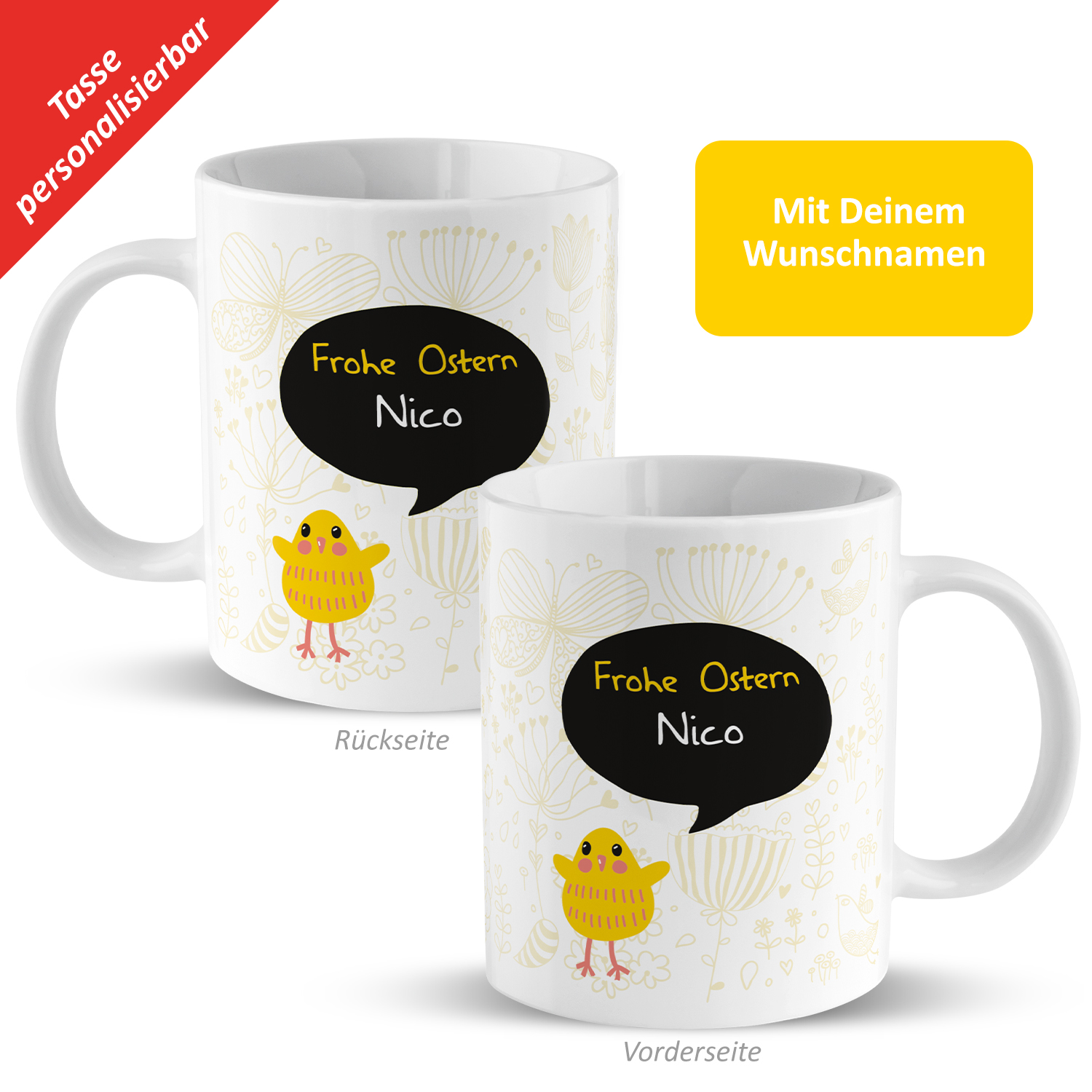 Tasse für Ostern »Frohe Ostern ...« mit Wunschnamen, weiß, personalisierbar