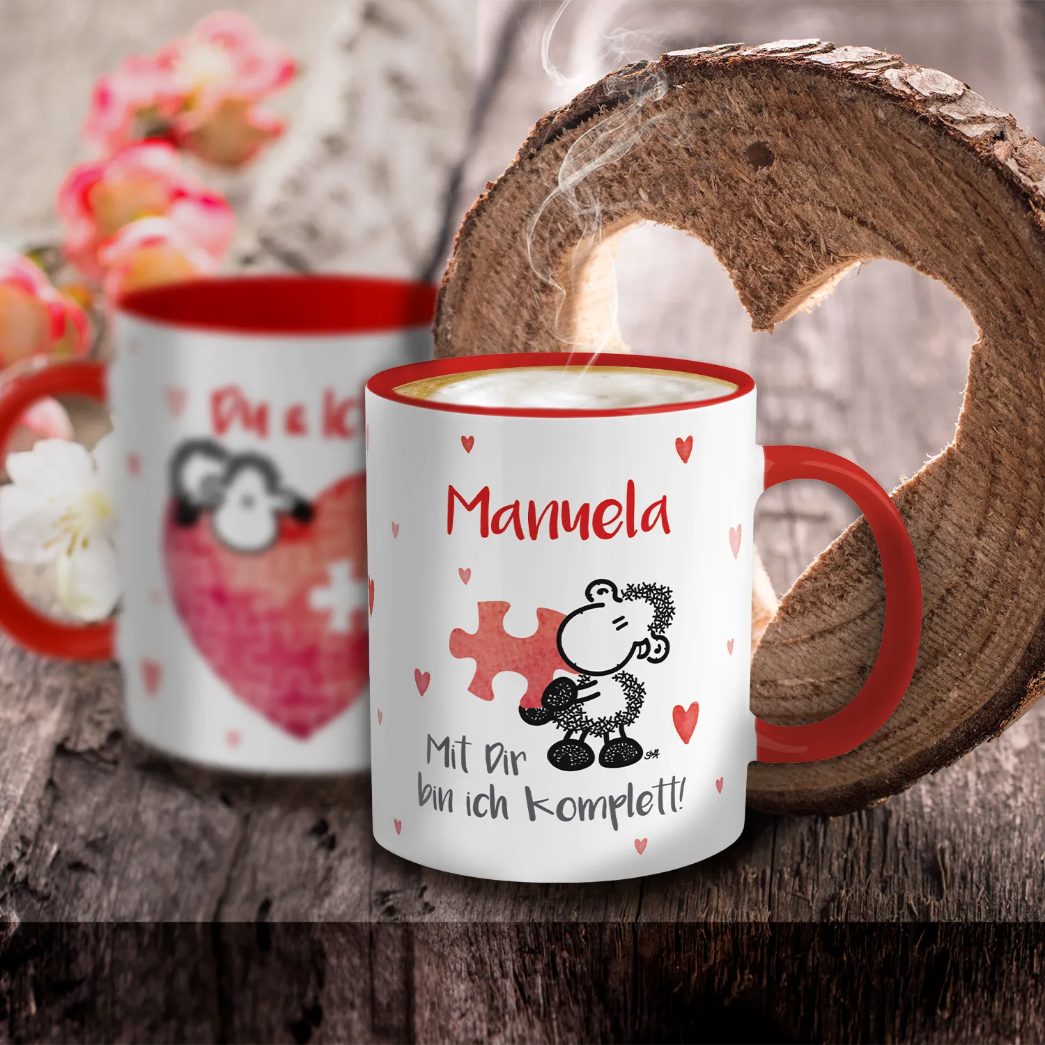 Tasse für Verliebte »Mit Dir bin ich komplett!« mit Wunschnamen, rot, personalisiert
