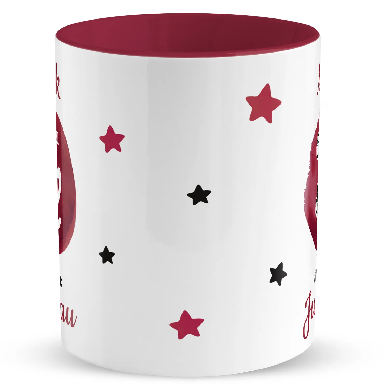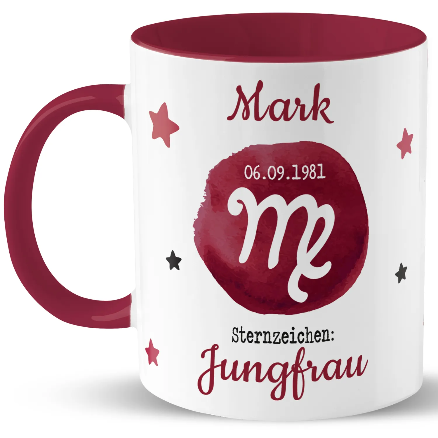 Tasse mit Sternzeichen »Jungfrau«, mit Namen und Geburtsdatum, bordeaux, personalisiert