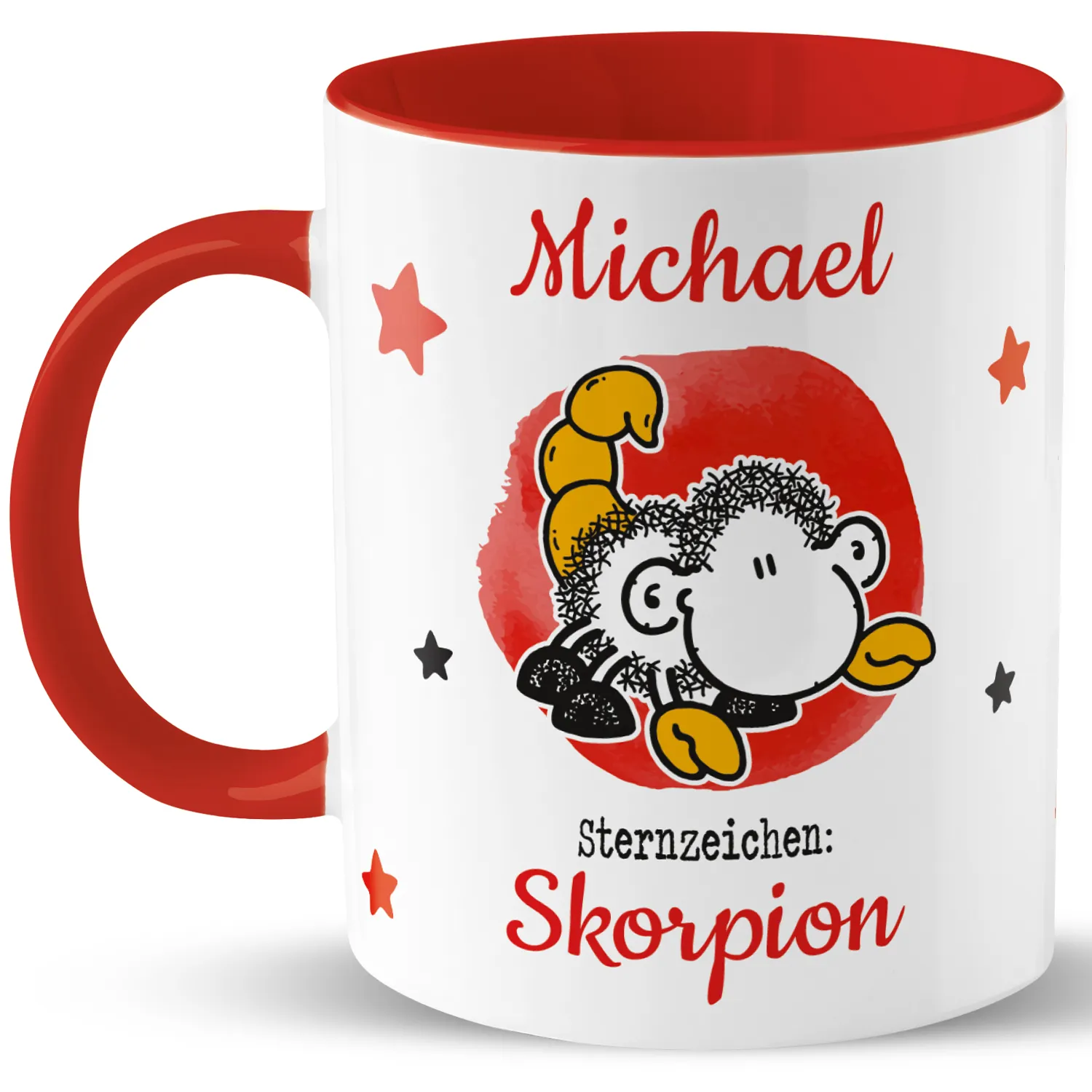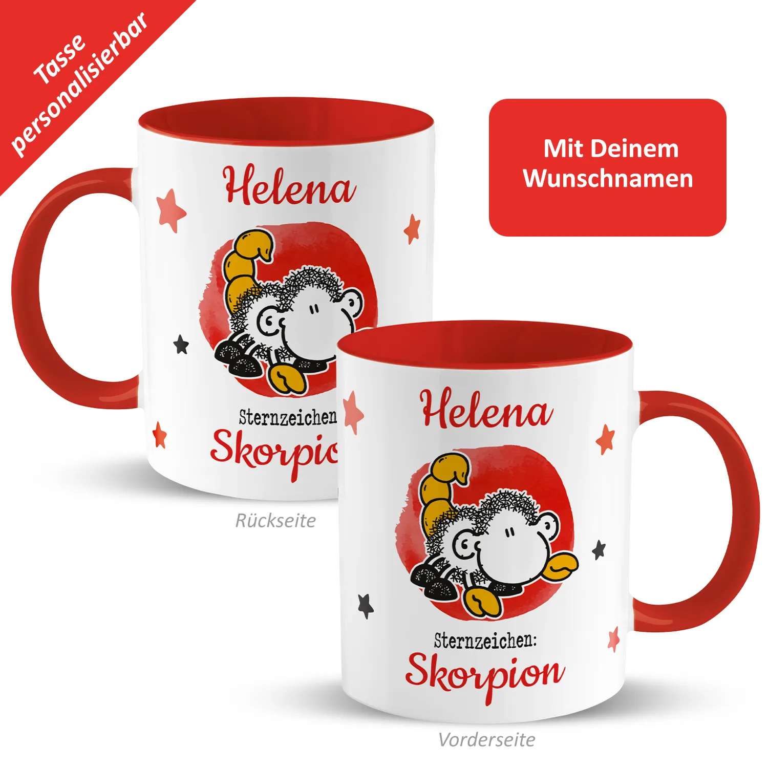 Tasse mit Sternzeichen »Skorpion«, mit Namen, rot, personalisiert