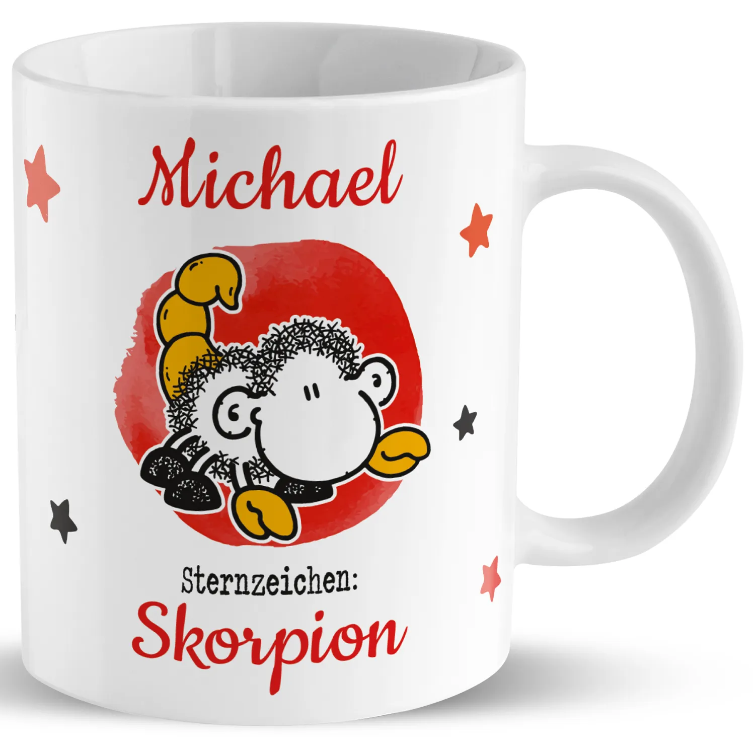 Ein individuelleres Geburtstagsgeschenk für Freunde oder Familienmitglieder mit dem Sternzeichen »Skorpion« gibt es kaum. Die Sternzeichentasse mit sheepworld Skorpion-Schaf wird mit dem Namen und dem Geburtsdatum des Beschenkten personalisiert und wird so zum ganz persönlichen Geschenk.Hinweis: Sternzeichen »Skorpion« (Zeitraum: 24.10. - 22.11.)