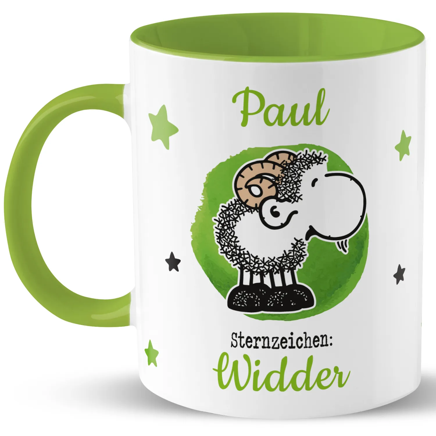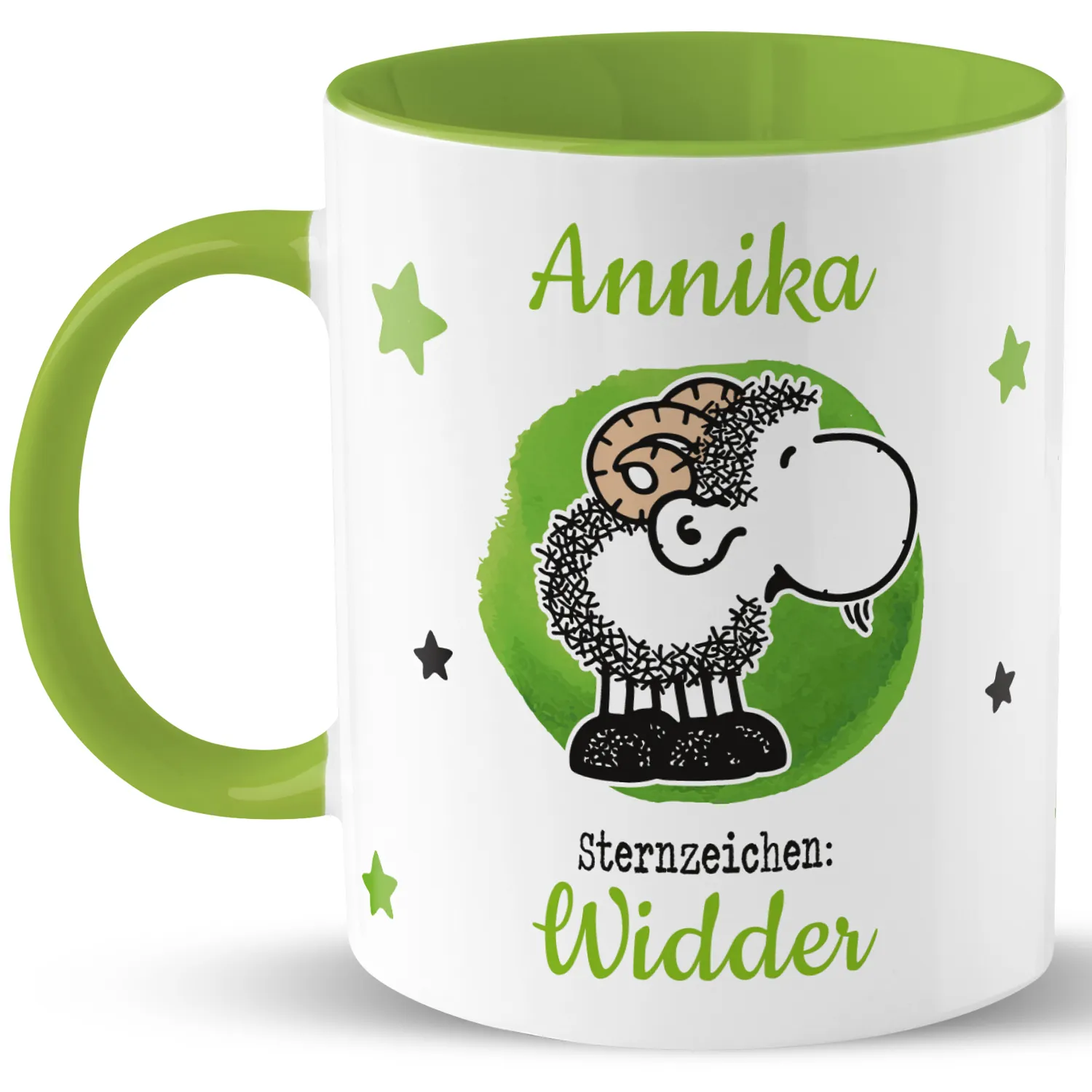 Tasse mit Sternzeichen »Widder«, mit Namen, grün, personalisiert