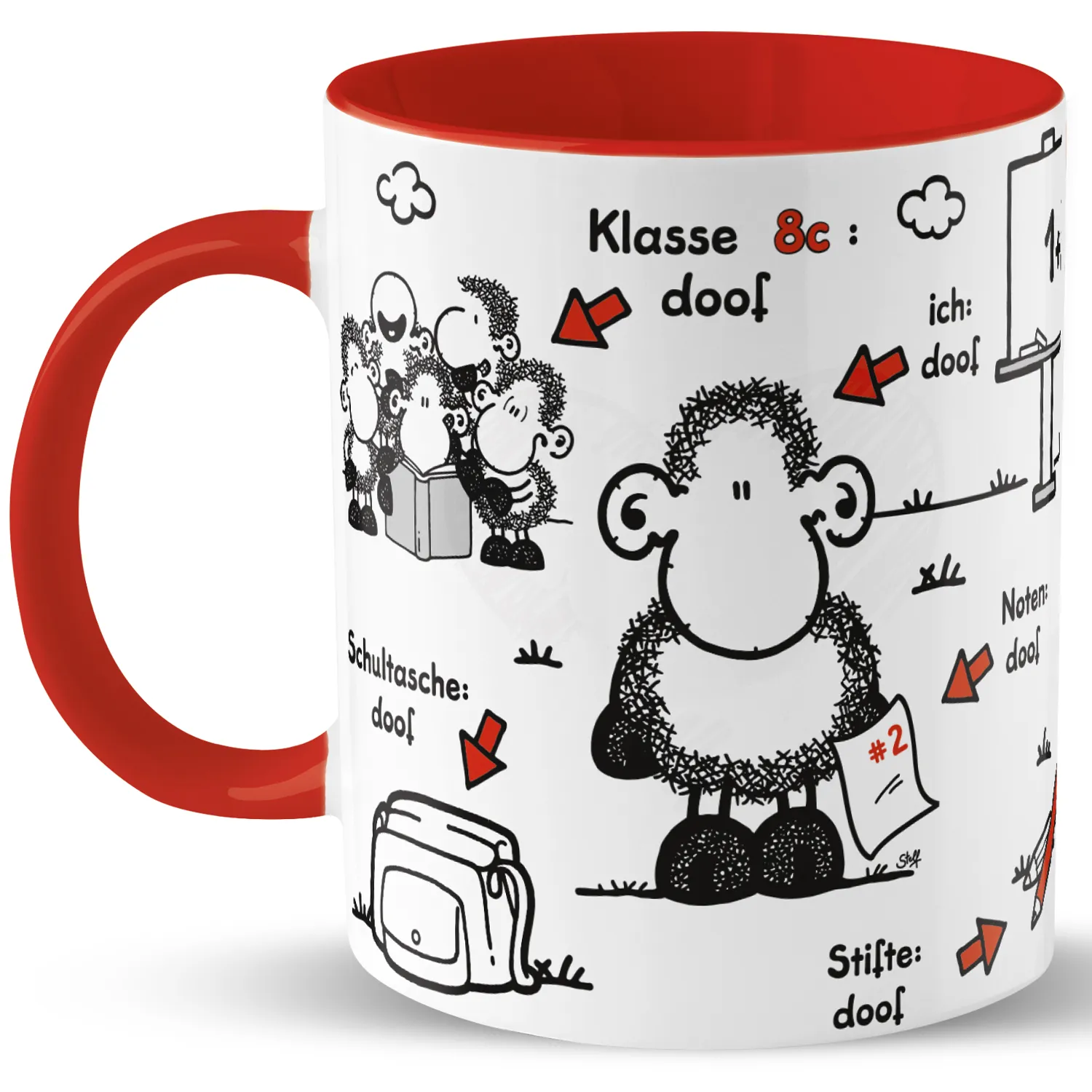 Zum Schulanfang ist die Tasse mit dem sheepworld Motiv »Ohne ... ist Schule doof.« eine perfekte Geschenkidee für Jungen und Mädchen, die mit dem jeweiligen Vornamen und der Schulklasse personalisiert wird. Sie passt super mit in die Schultüte, kann aber auch einzeln oder mit ein paar Süßigkeiten gefüllt, verschenkt werden.