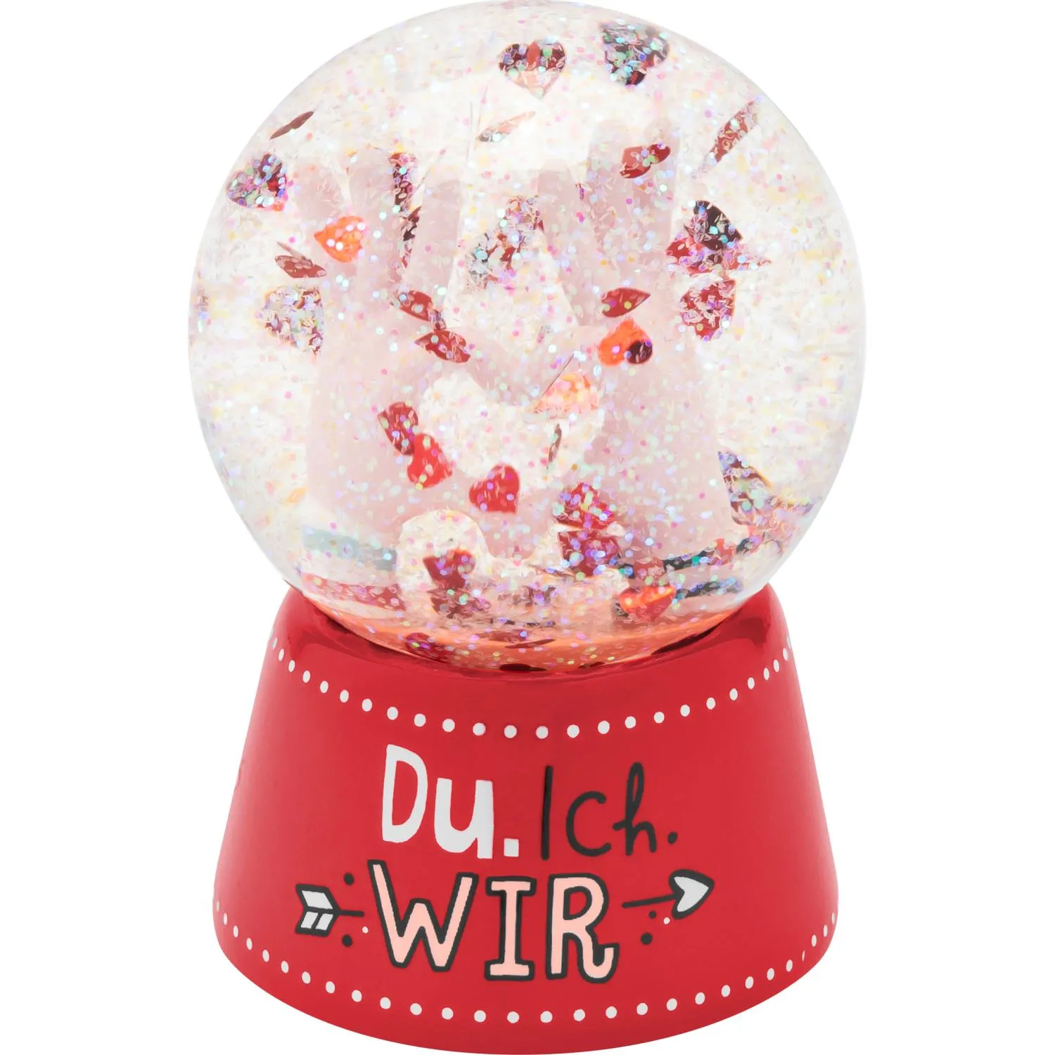 Die Schneekugel mit Glitzer und roten Herzchen ist ein bezauberndes Dekorationsstück, das jedem Raum eine zauberhafte Atmosphäre verleiht. In der Kugel tanzen funkelnde Glitzerpartikel um die roten Herzchen herum und sorgen für eine romantische Stimmung.