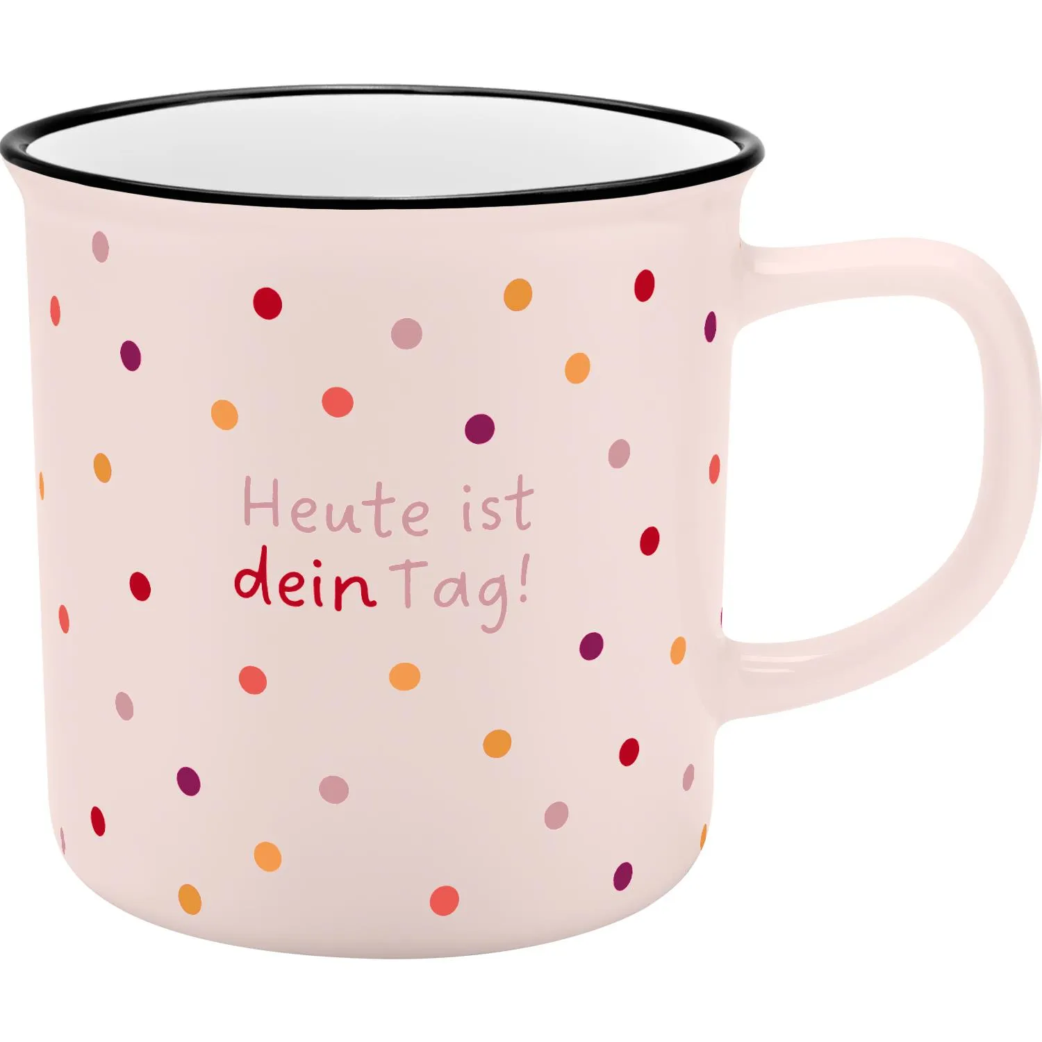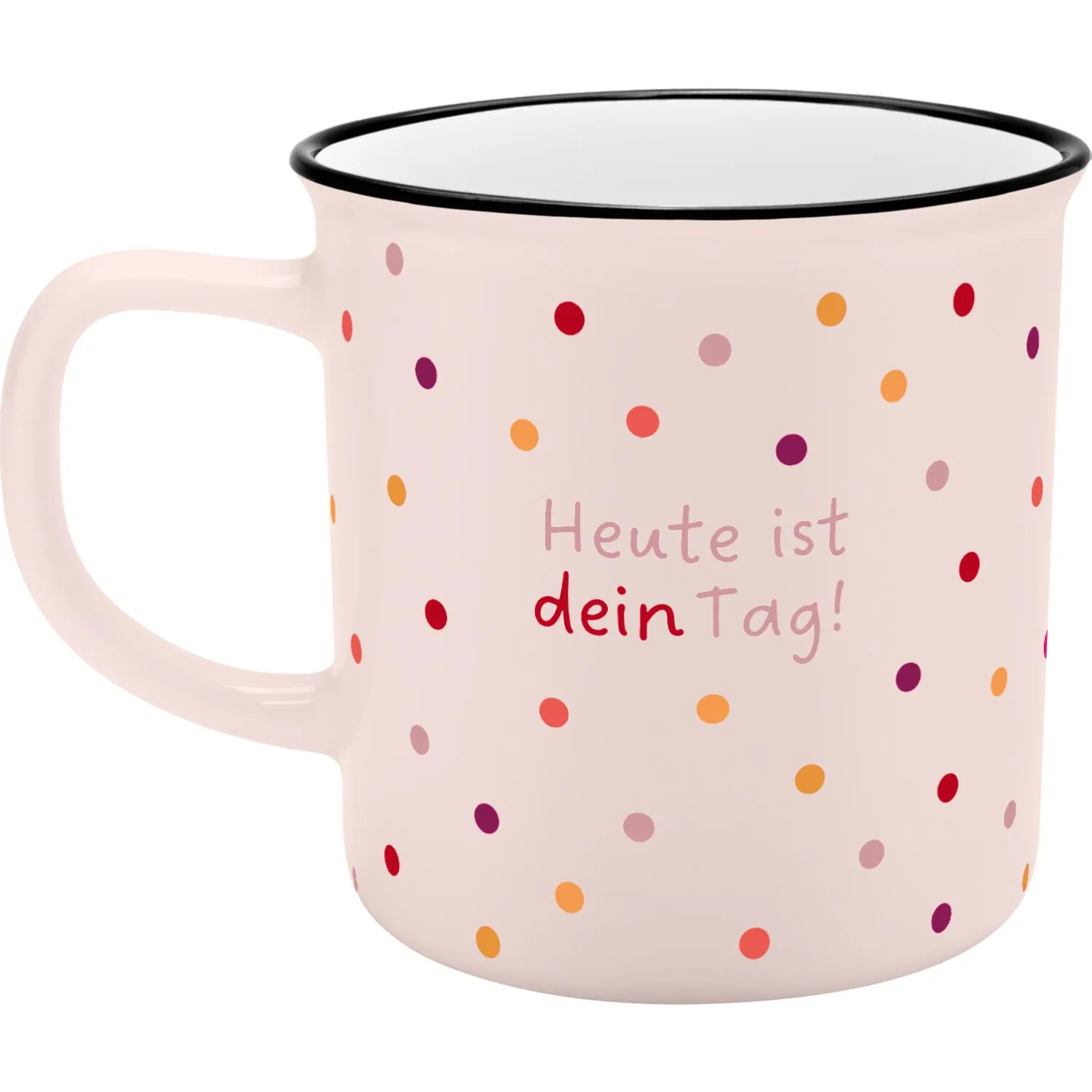 Der Becher mit der Aufschrift »Heute ist Dein Tag« ist wie ein kleiner Mutmacher, der Dir schon beim ersten Blick am Morgen ein Gefühl gibt, dass Du heute alles schaffen kannst.