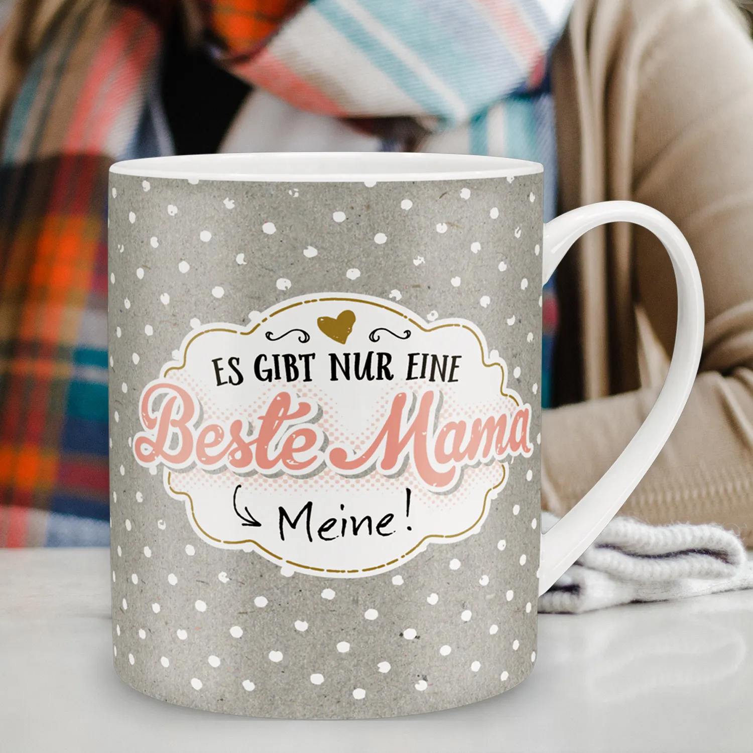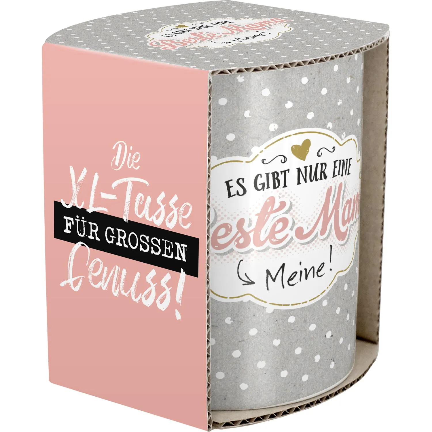 Die Botschaft »Es gibt nur eine beste Mama --> Meine!« in Kombination mit dem trendigen Punktemuster machen diese extragroße Tasse zum perfekten Muttertagsgeschenk. Dank der liebevoll gestalteten Geschenkbanderole ist die große Tasse bereits fertig zum Verschenken.