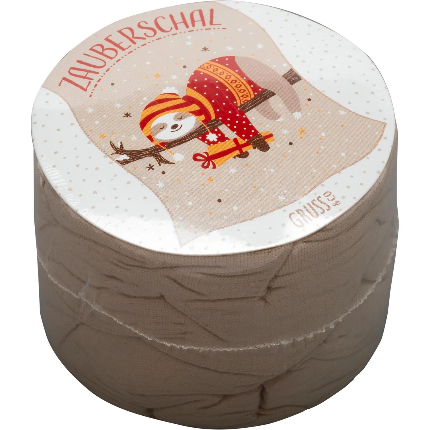 Faultierfans aufgepasst! Mit dem stylishen Schal im Chiller-Look bist Du für die Wintermonate bestens gewappnet! Einfach das gepresste Paket für ca. 15 Minuten ins Wasser legen und es verwandelt sich wie von Zauberhand in einen schicken Schal, der jedes Winteroutfit aufpeppt.